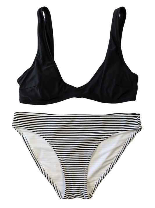 Aerie Bikini with Black Top and Black & White Striped Bottom NWT size S