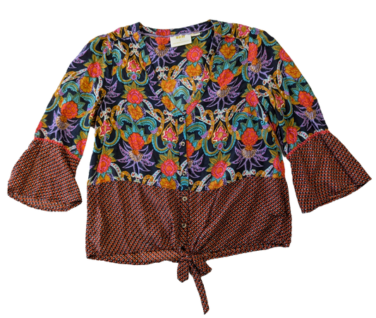 Maeve by Anthropologie Bell-Sleeve Tie-Front Boho-Style Blouse Size 4