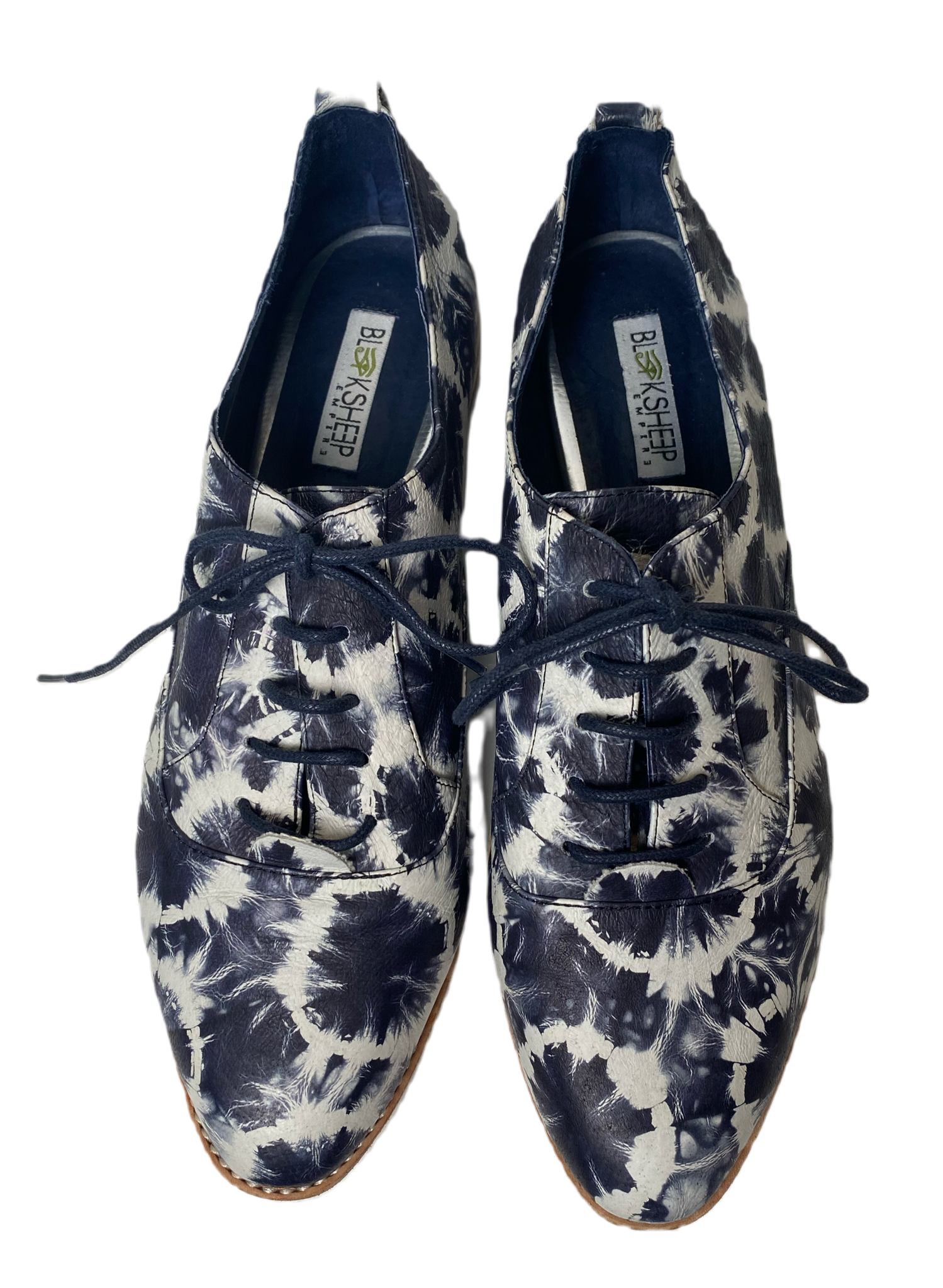 Step up your shoe game with our Black Sheep Empire LEE Oxford Loafers! Made with a navy tie-dye leather upper and lined with navy leather, these loafers are as stylish as they are comfortable. The 4mm insole padding and leather and white rubber soles provide all-day support, while the blue waxe