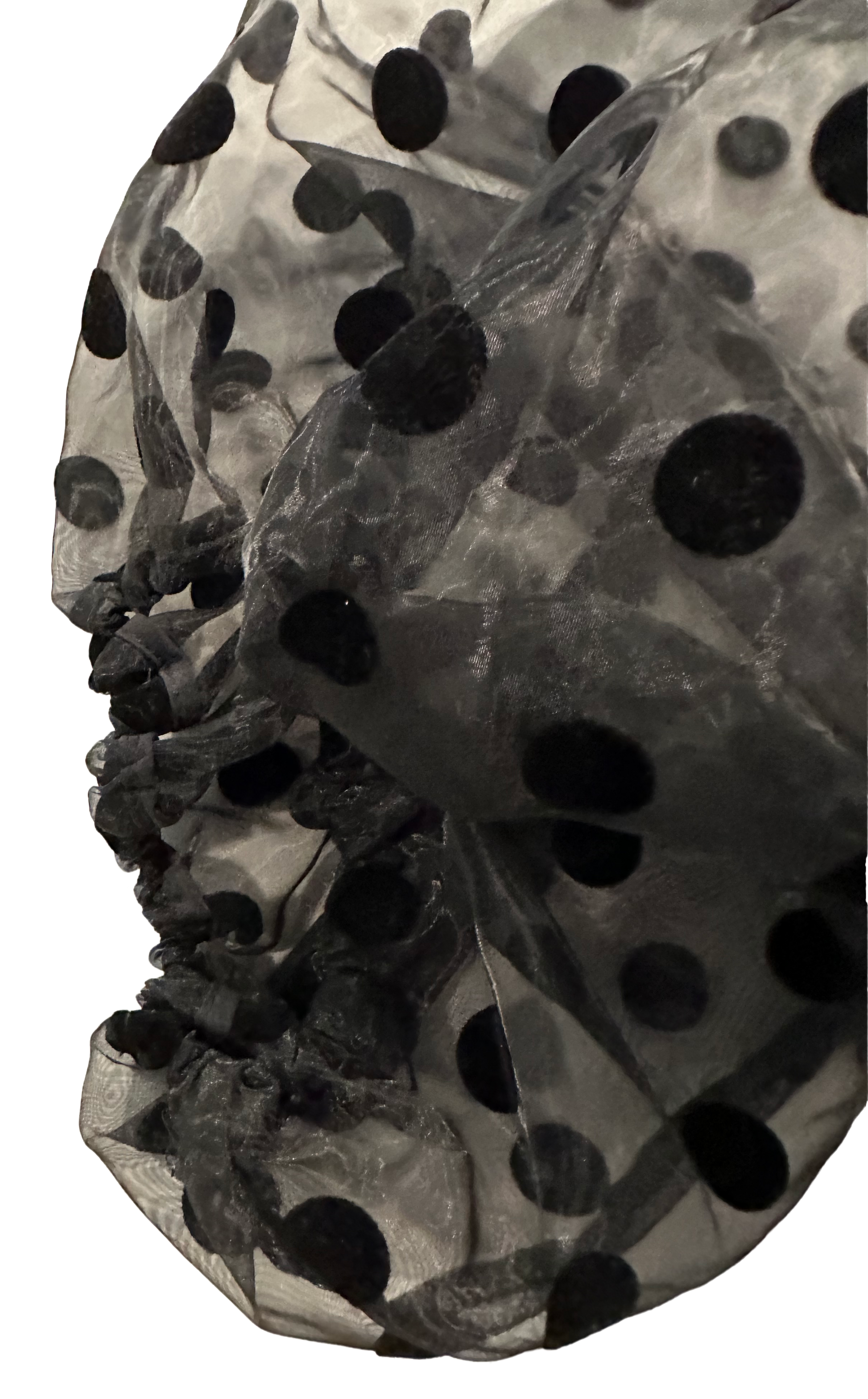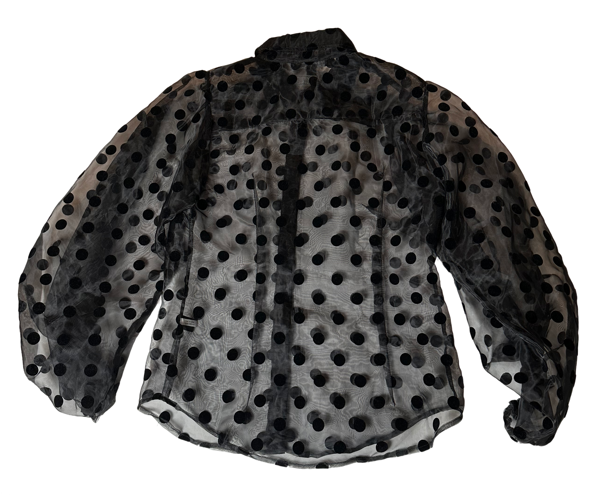 Boston Proper Sheer Black Polka Dot Balloon 3/4 Sleeve Button Up Collar Blouse size Small