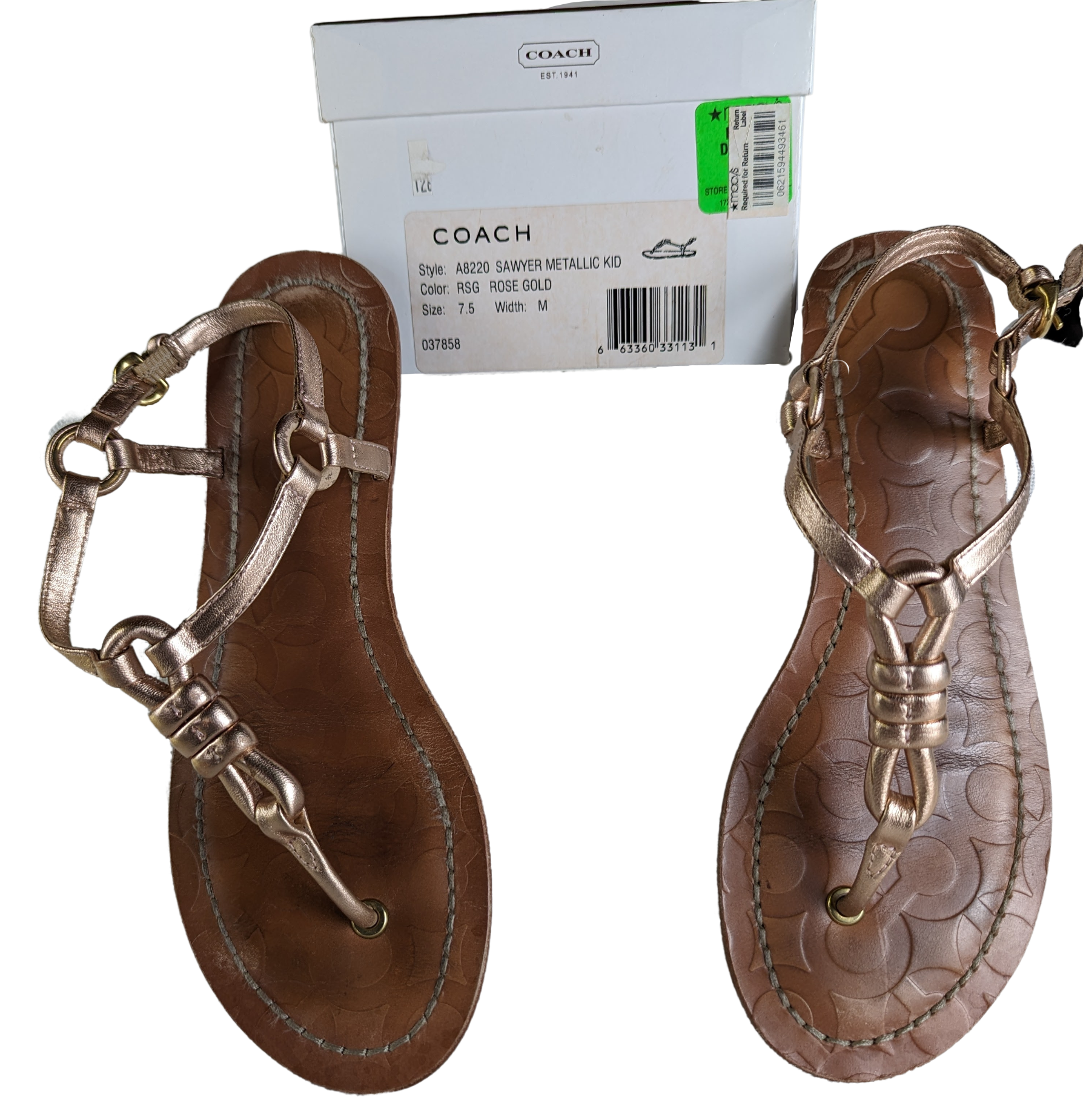 Coach Sawyer Rose Gold Leather Sandals Size 7.5