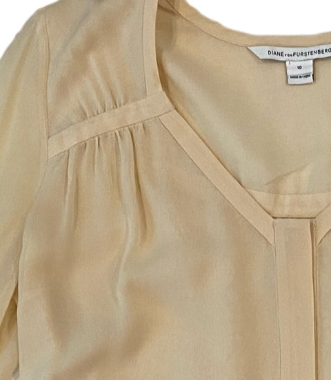 Diane Von Furstenberg Long Sleeve Silk Cream Blouse Size 10