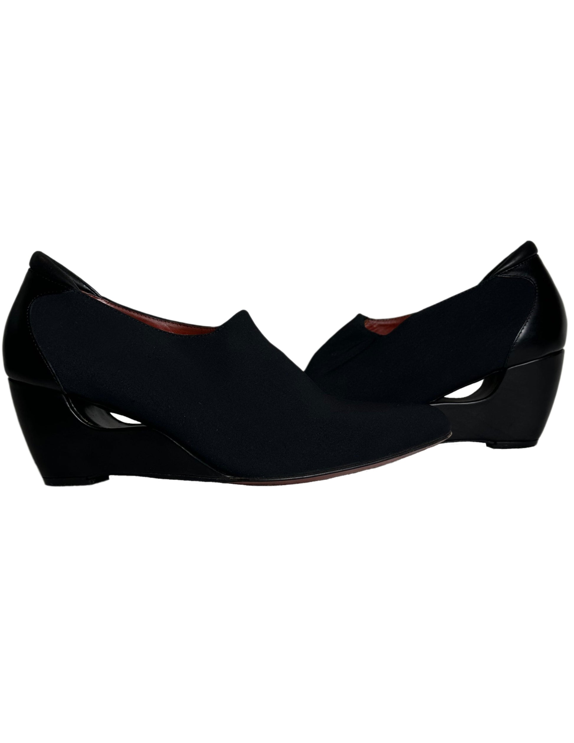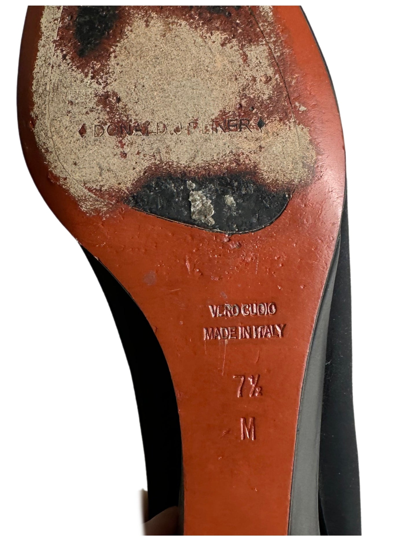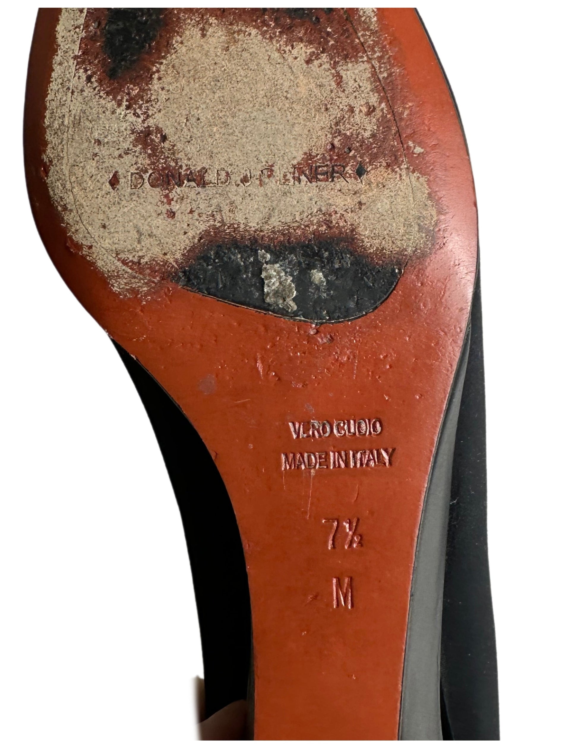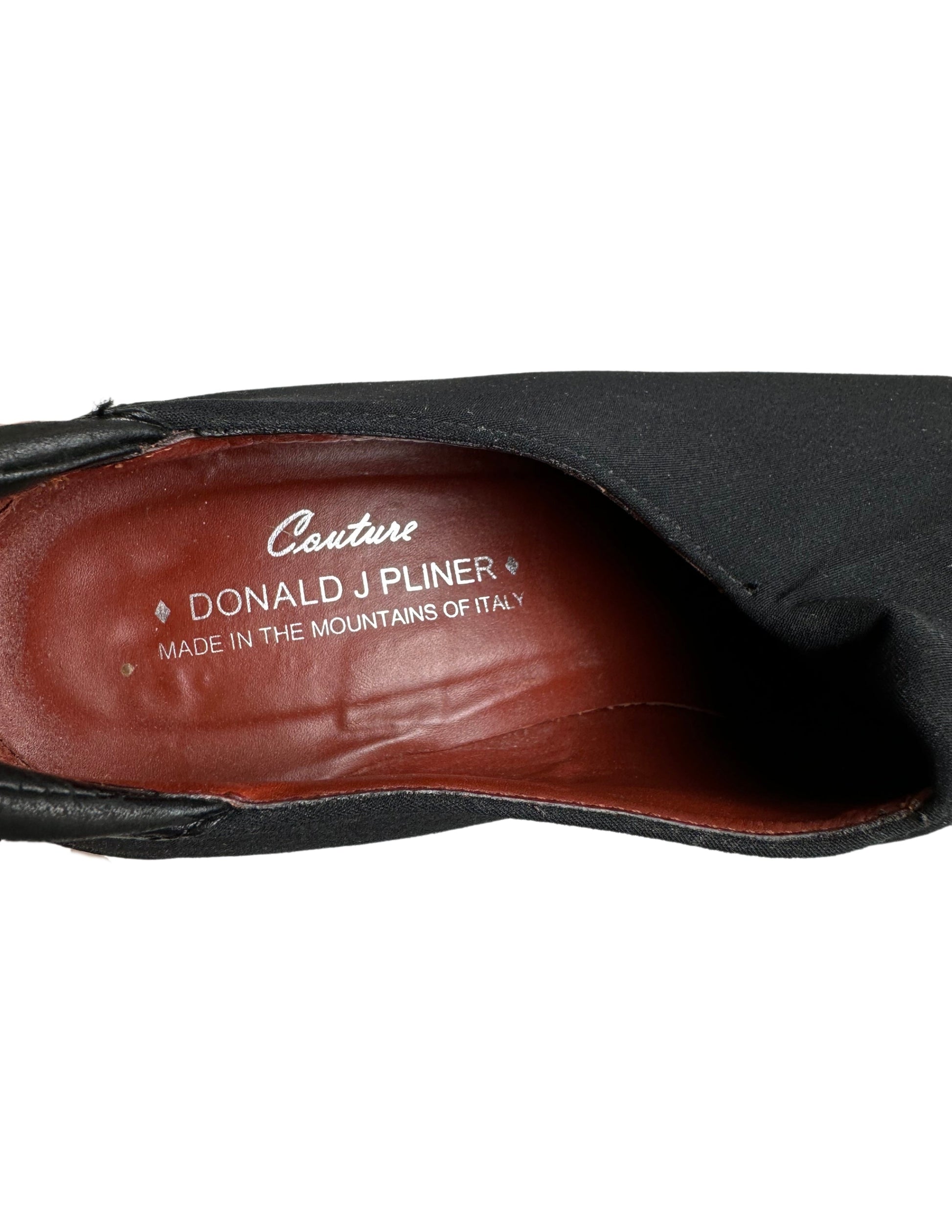 Indulge in luxury with Donald J Pliner Couture's Italian-made leather pumps. Featuring a stunning cut out wedge for added detail and slip-on ease. The stretch fabric adds comfort and the black shade is timeless. Elevate your style with these high-quality shooties in beautiful condition.