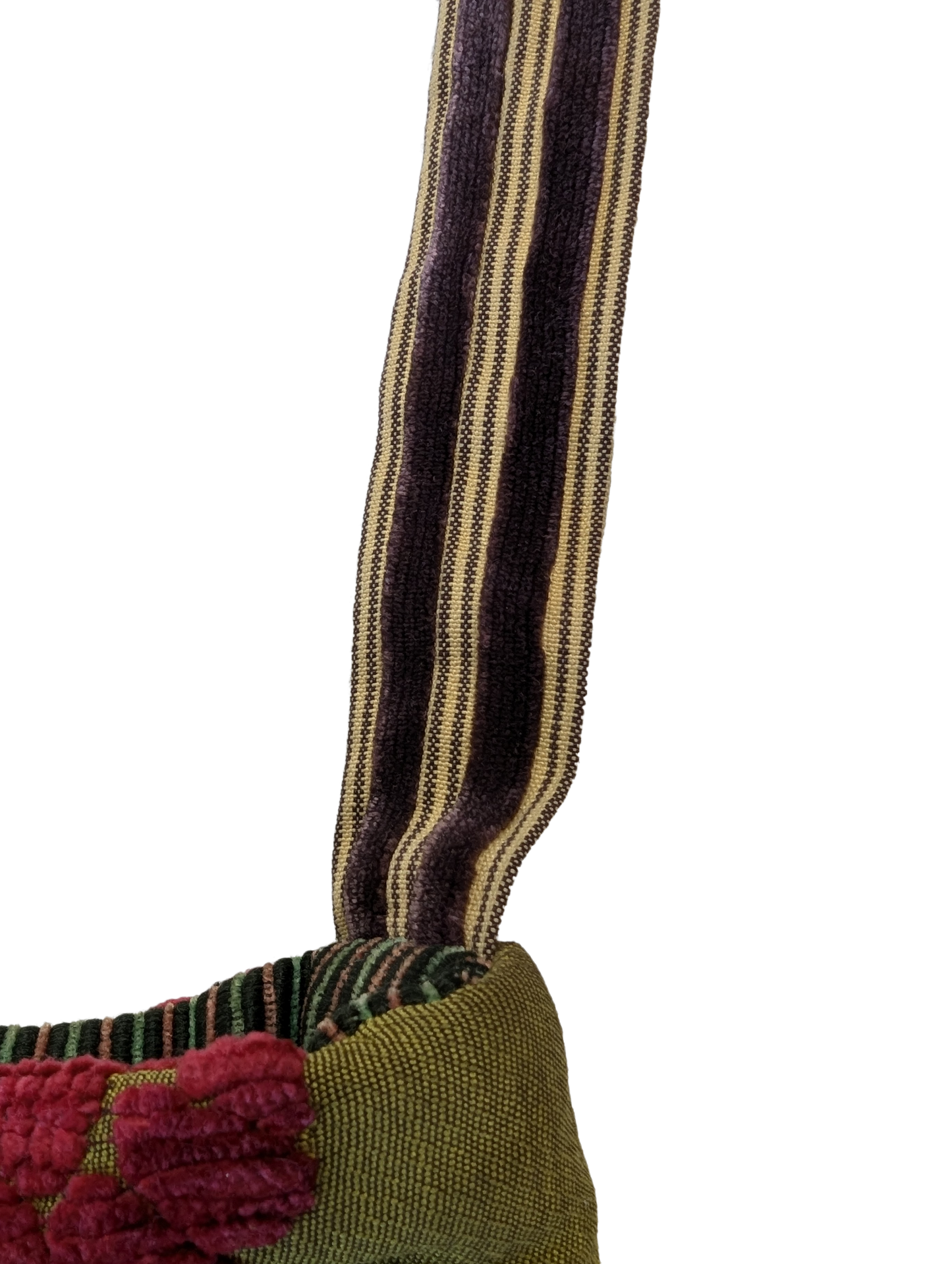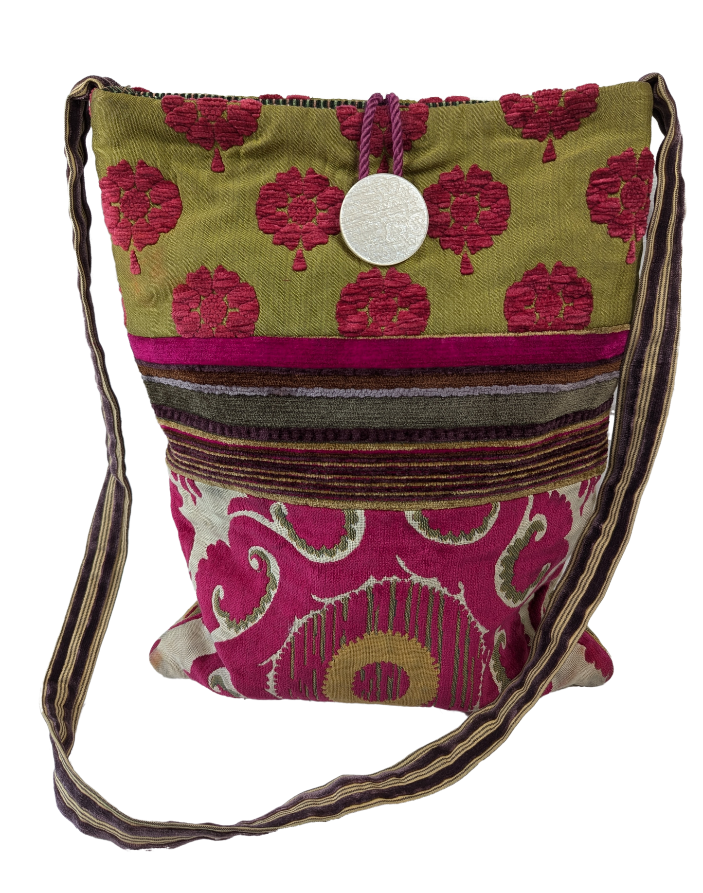 This Dorit Collection patchwork messenger bag, handmade by Dorit Berger, is the perfect blend of boho and fairy-inspired style. With a soft and luxurious exterior and convenient shoulder strap, this bag adds a touch of whimsy to any outfit. Button closure with intricate design. Carry your essentials in unique style with this one-of-a-kind purse.