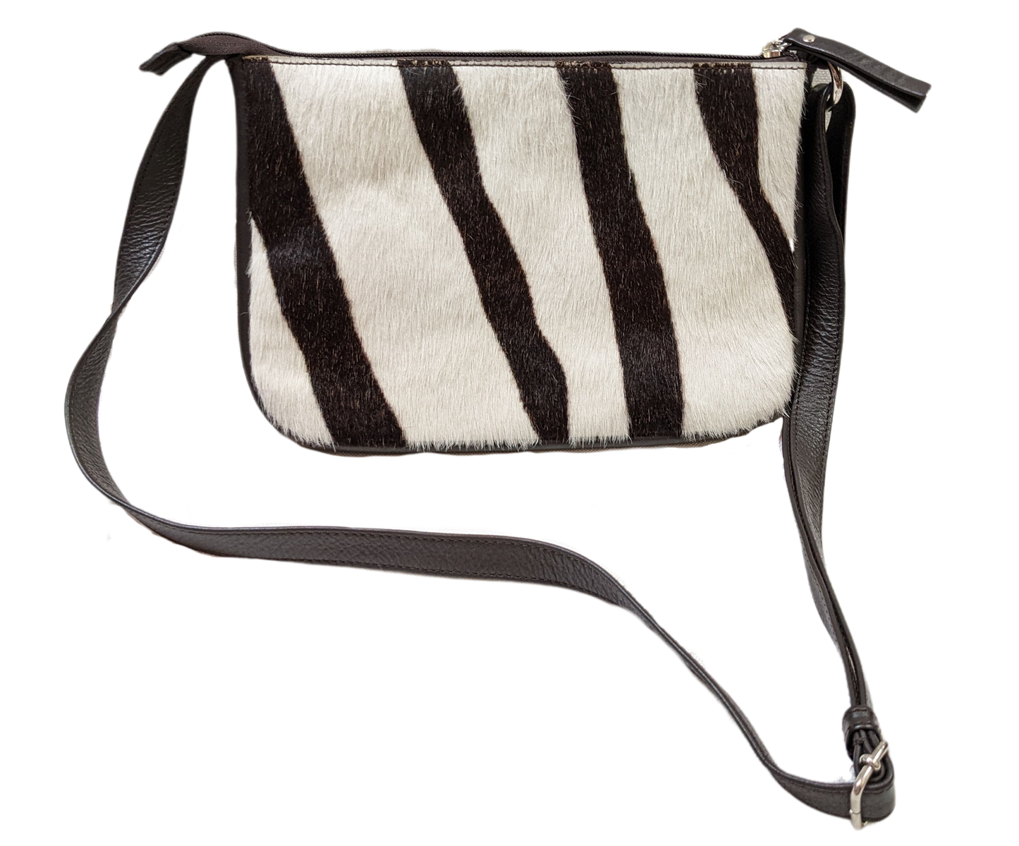 Unleash your wild side with this faux zebra hair purse! (Just don't tell the real zebras.) Featuring a trendy crossbody design and a clean interior for all your essentials, this unbranded purse is sure to add a touch of untamed style to any outfit.