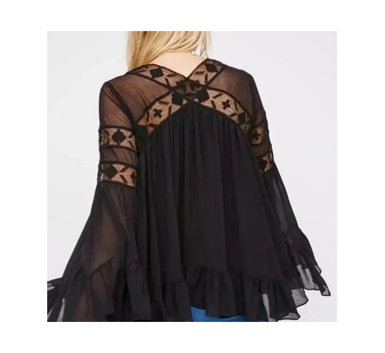 Free People All Night Tunic - Flowy Lace and Ruffles Size Medium