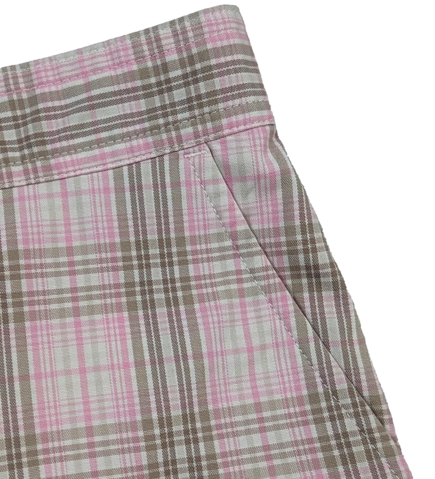 Experience ultimate style and comfort with Izod PerformX Cool-FX Bermuda Shorts. Made with Cool-FX technology, these pink and tan plaid shorts keep you cool and dry all day long. Featuring back and side pockets, they are perfect for both fashion and function. Size 2 available.