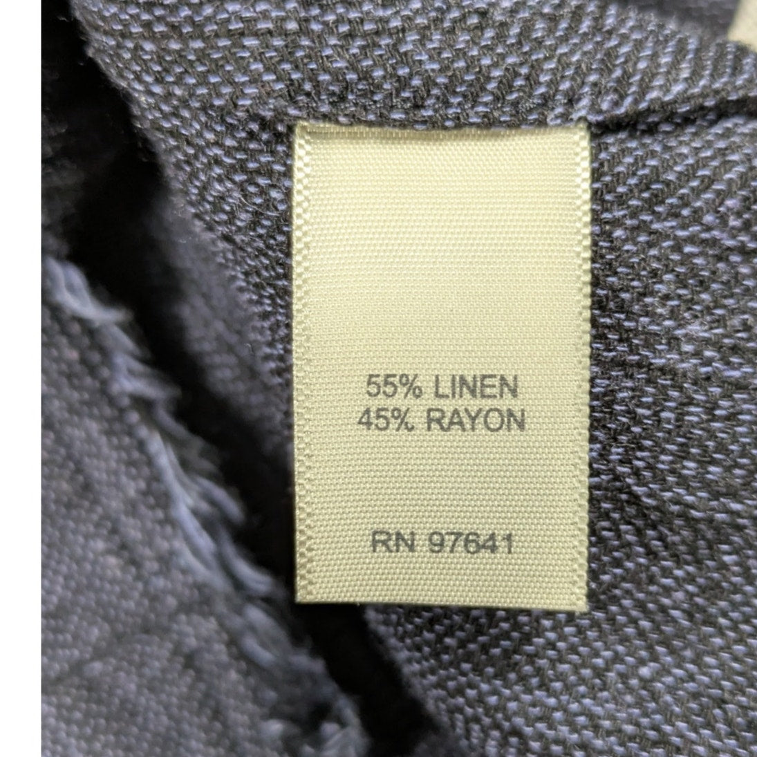 Elevate your style with this beautiful J. Jill linen blend denim jacket! In a dark blue wash, this blazer features a unique fringe detail, functional pockets, and button closures. Perfect for adding a touch of casual sophistication to any outfit.