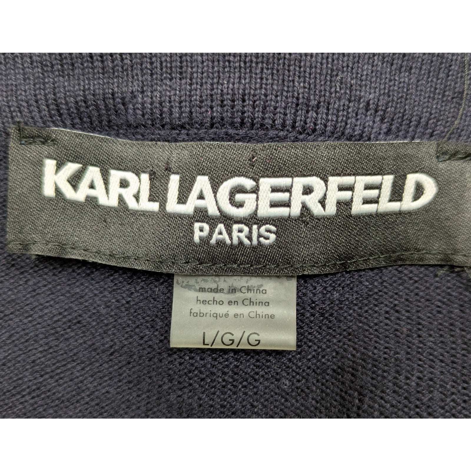 Karl Lagerfeld Navy Cardigan with Sheer Front and Flower appliques Size Large