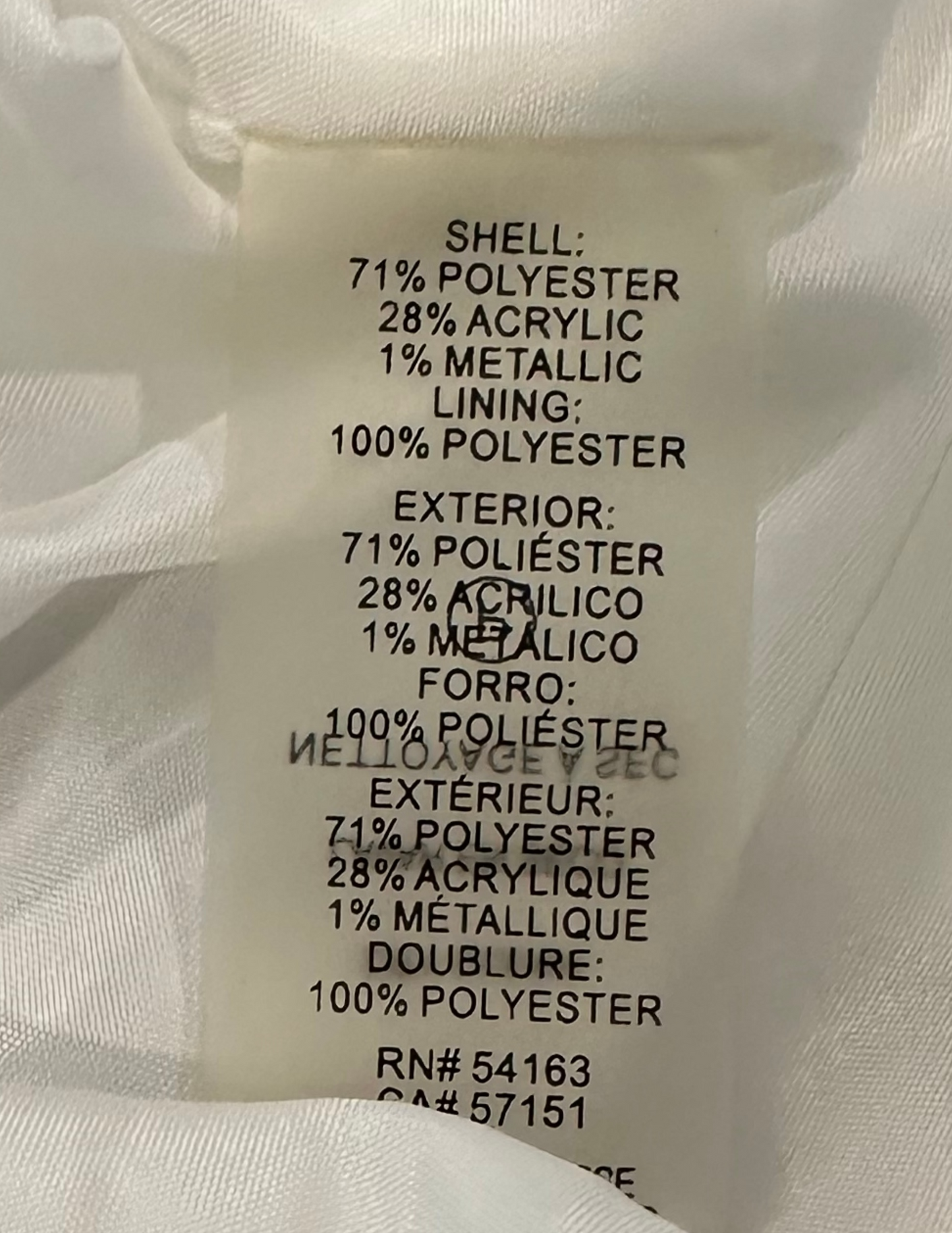 This Karl Lagerfeld Paris dress is an elegant addition to any wardrobe. The criss cross waist creates a flattering silhouette, while the silver metallic thread adds a touch of luxury. The zip back closure, sleeveless design and ruffled hem add a sophisticated and exclusive touch. Perfect for any occasion, this dress is a must-have for those with a taste for the finer things in life.