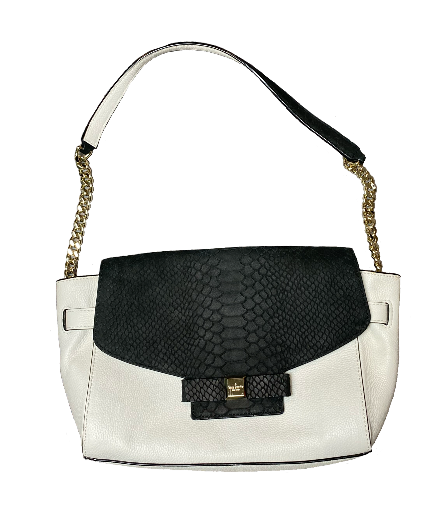 Experience the luxurious style and functionality of the Kate Spade Black and White Leather Purse! With a chic black faux croc flap and a white pebbled leather body, this purse is sure to turn heads. The chain and leather strap provide versatility while the inner zip pocket keeps your belongings secure. Complete your outfit with this must-have accessory!