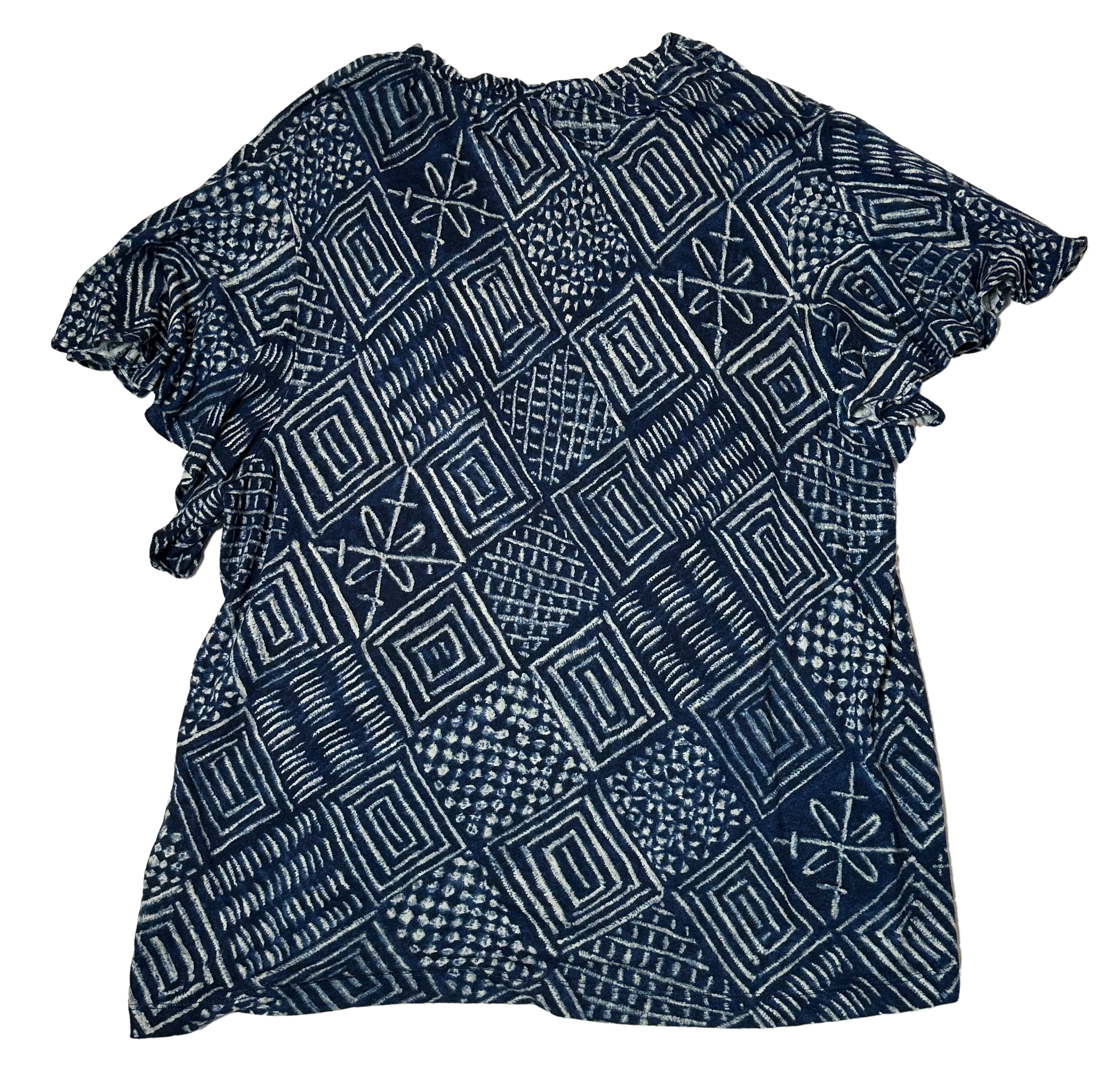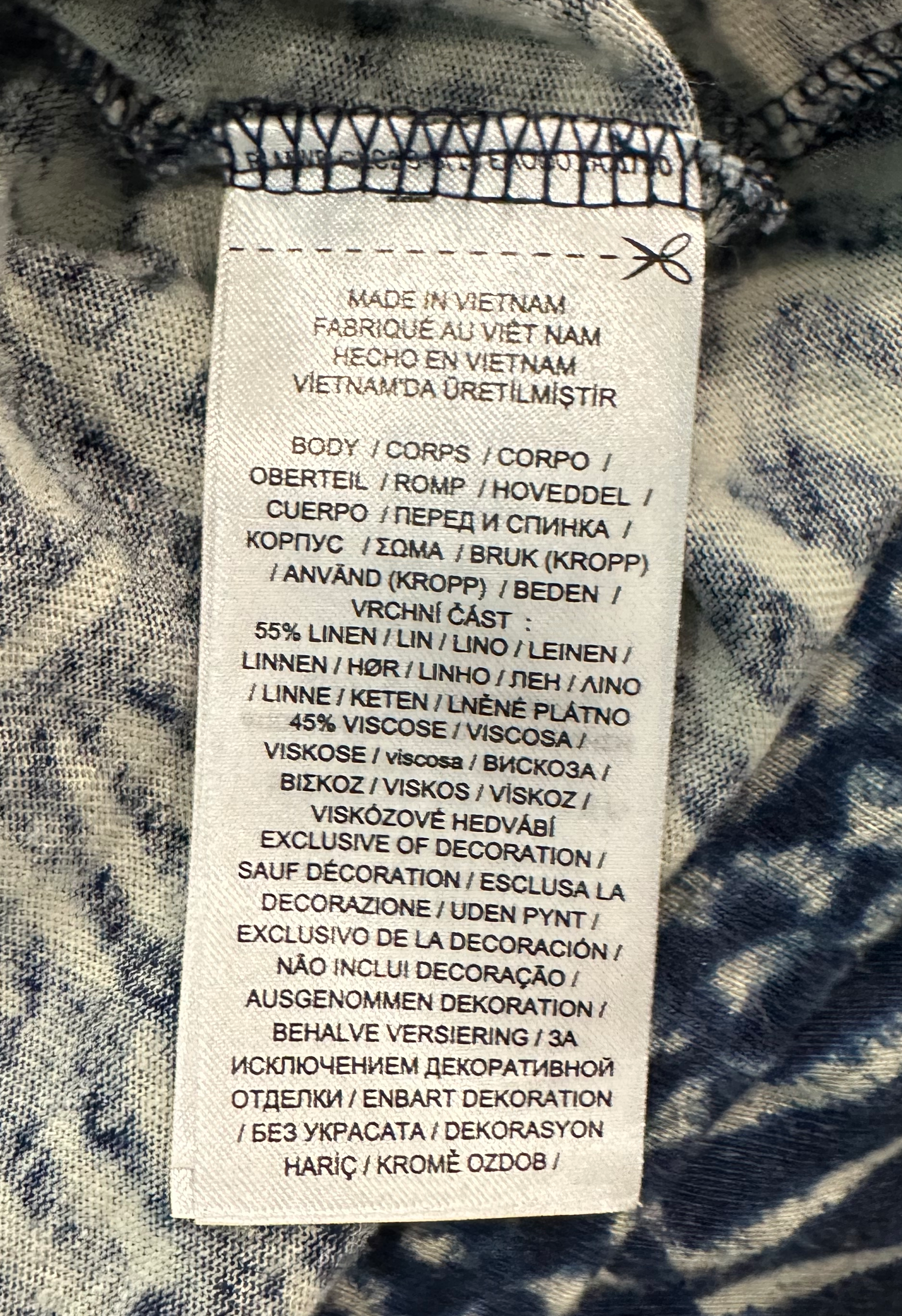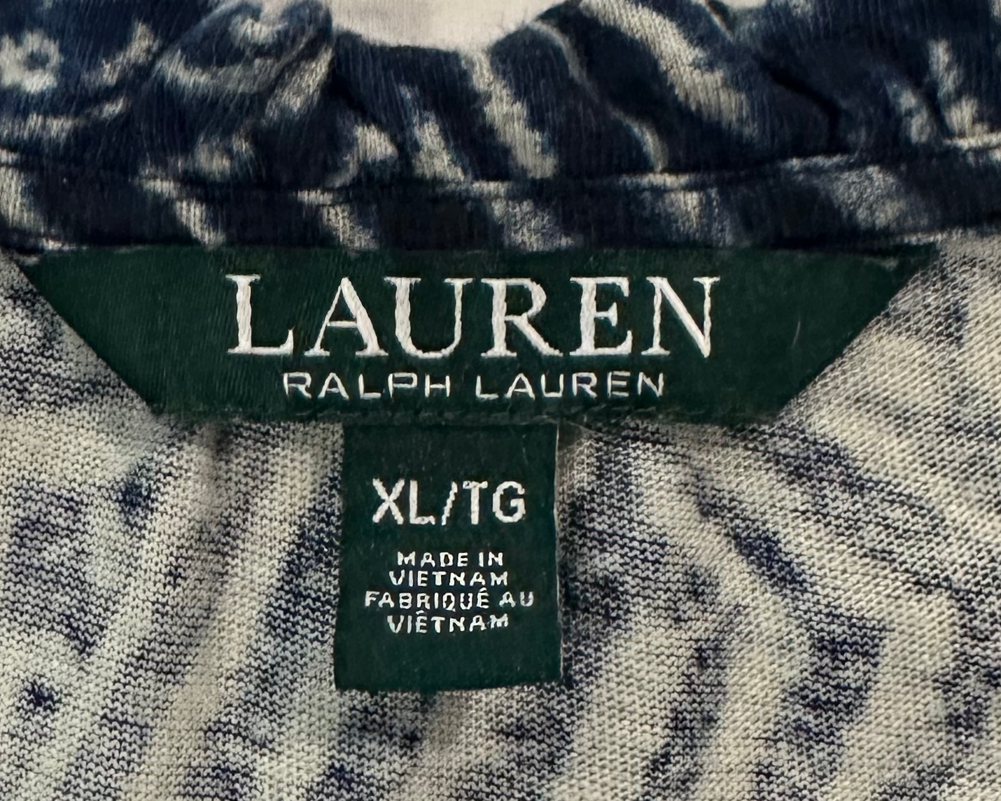 Lauren Ralph Lauren Blue and White Print Short Flutter Sleeve Linen Blend - size XL