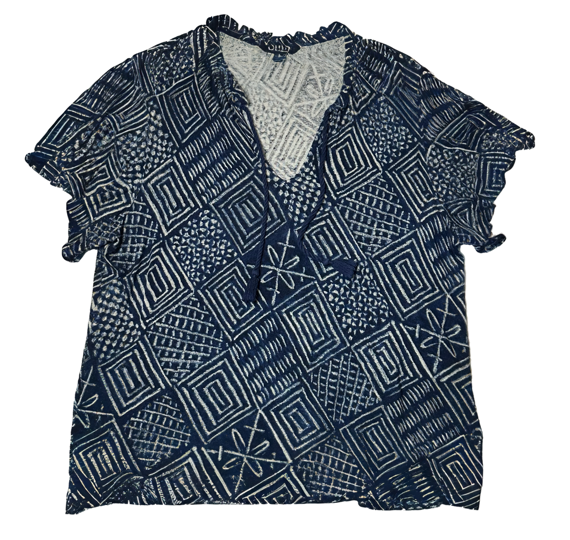 Step into sunny days with this playful navy blue and white print linen blend top from Lauren Ralph Lauren. Featuring a tassel tie V-neck and breezy short flutter sleeves, it’s perfect for spring and summer outings—from casual office days to lively BBQs and picnics. Designed in size XL for comfortable wear, this top adds a touch of effortless charm to your warm-weather wardrobe.