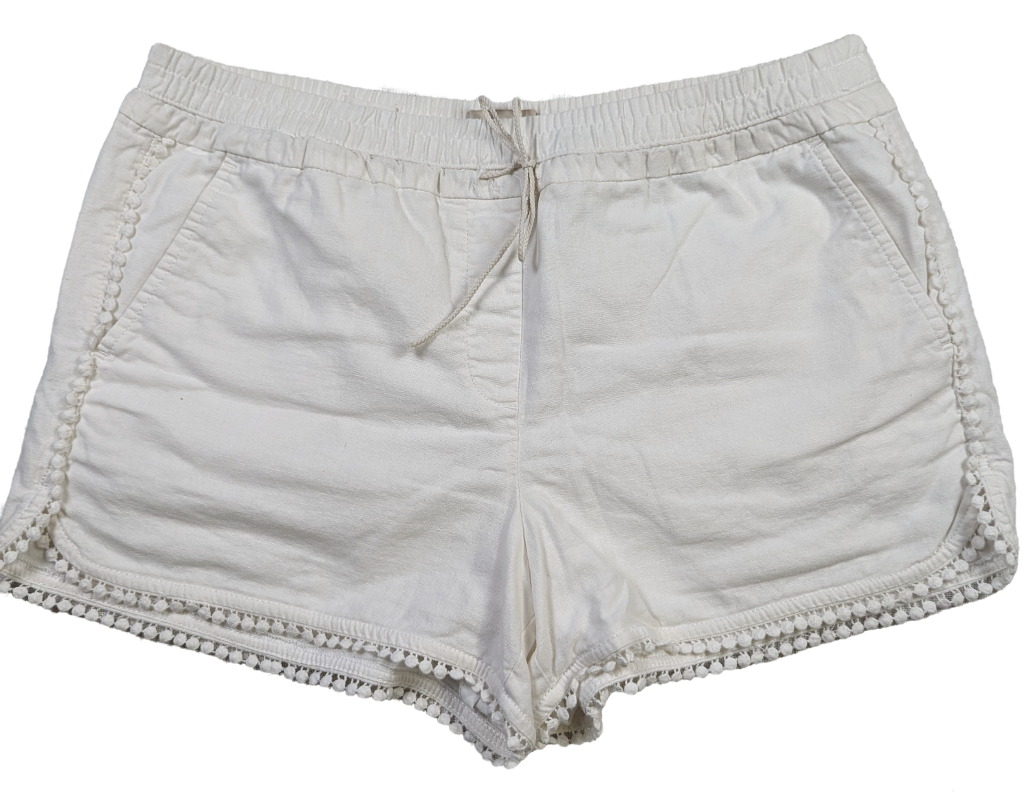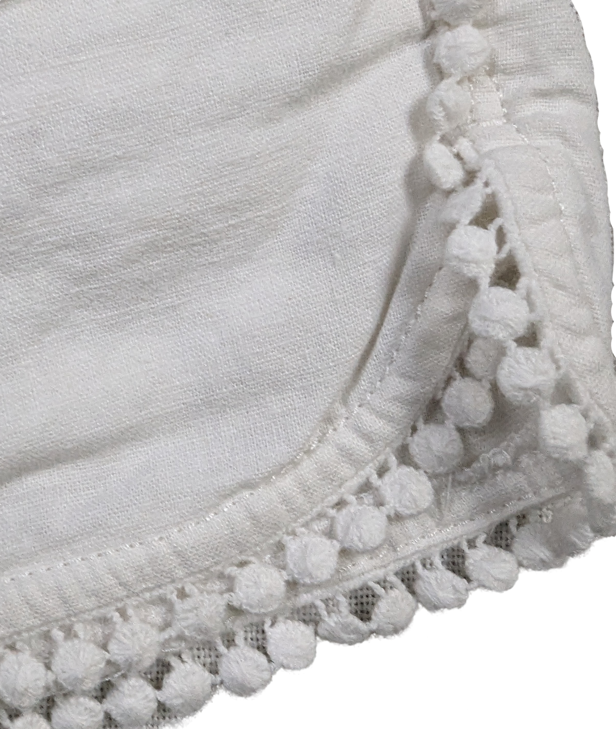 Crafted from a breezy linen blend fabric, these shorts offer a lightweight and breathable feel, making them ideal for warm coastal days. The high waist design provides a flattering fit while adding a touch of sophistication. Featuring charming pom pom trim, these shorts exude a playful and whimsical vibe that complements the coastal aesthetic. The elastic drawstring waist ensures a comfortable and adjustable fit, allowing you to customize the shorts to your liking. (Drawstring has been replaced)