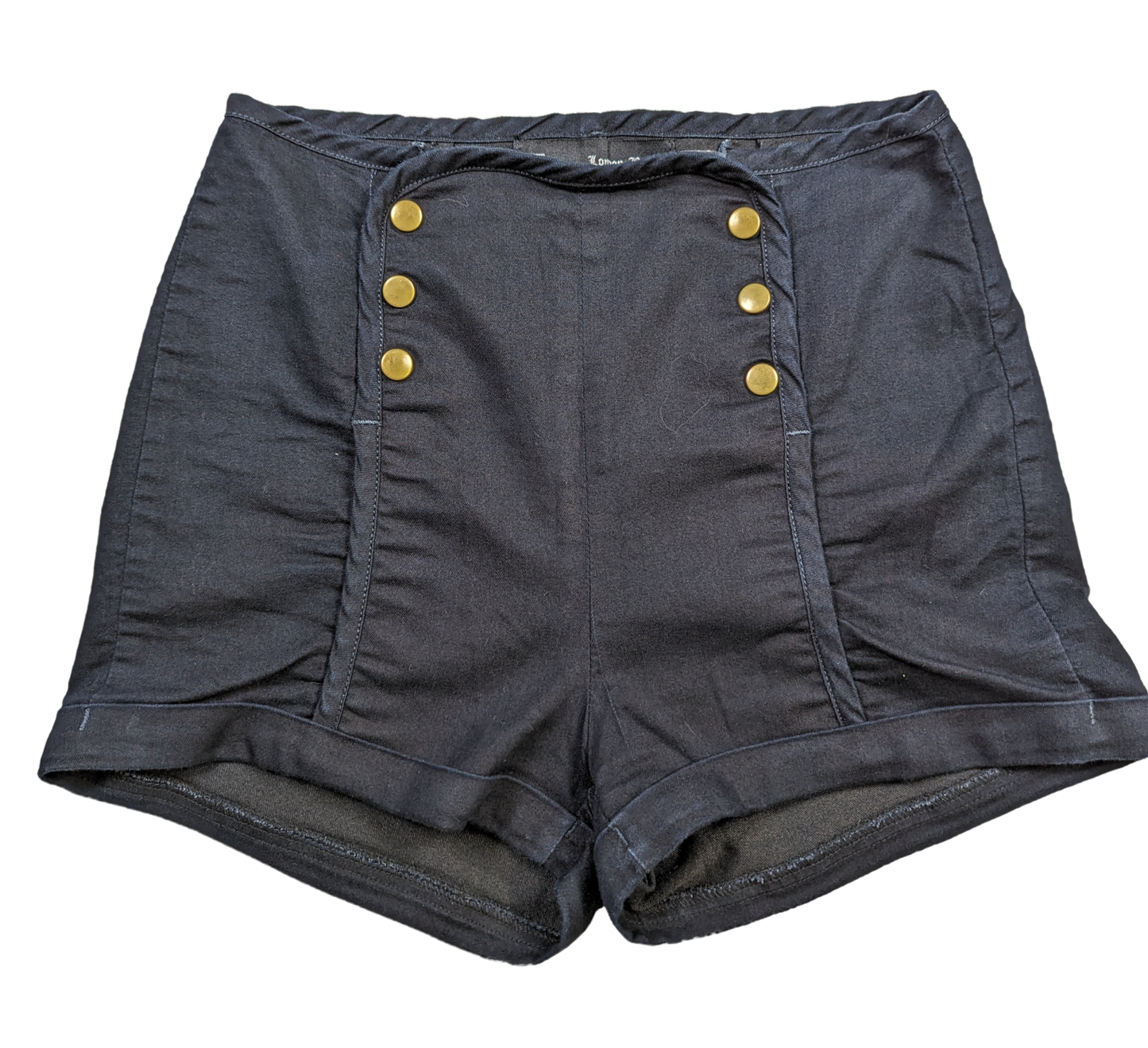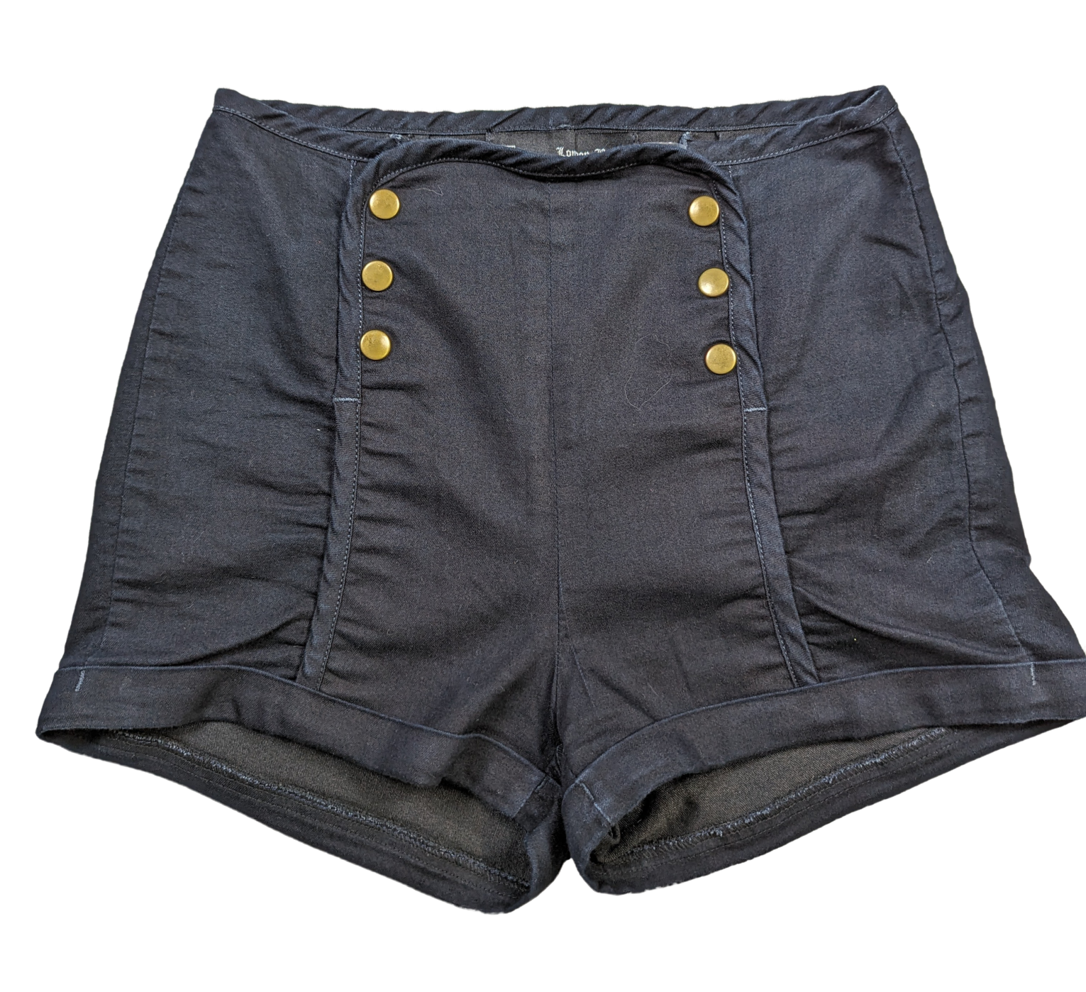 Sail away in style with our London Bridge Sailor Shorts. Made from a comfortable cotton/spandex blend, these shorts feature two 3-button closures in the front and a 1 1/2 inch inseam. Perfect for a day on the boat or a stroll around the city. Ahoy matey!