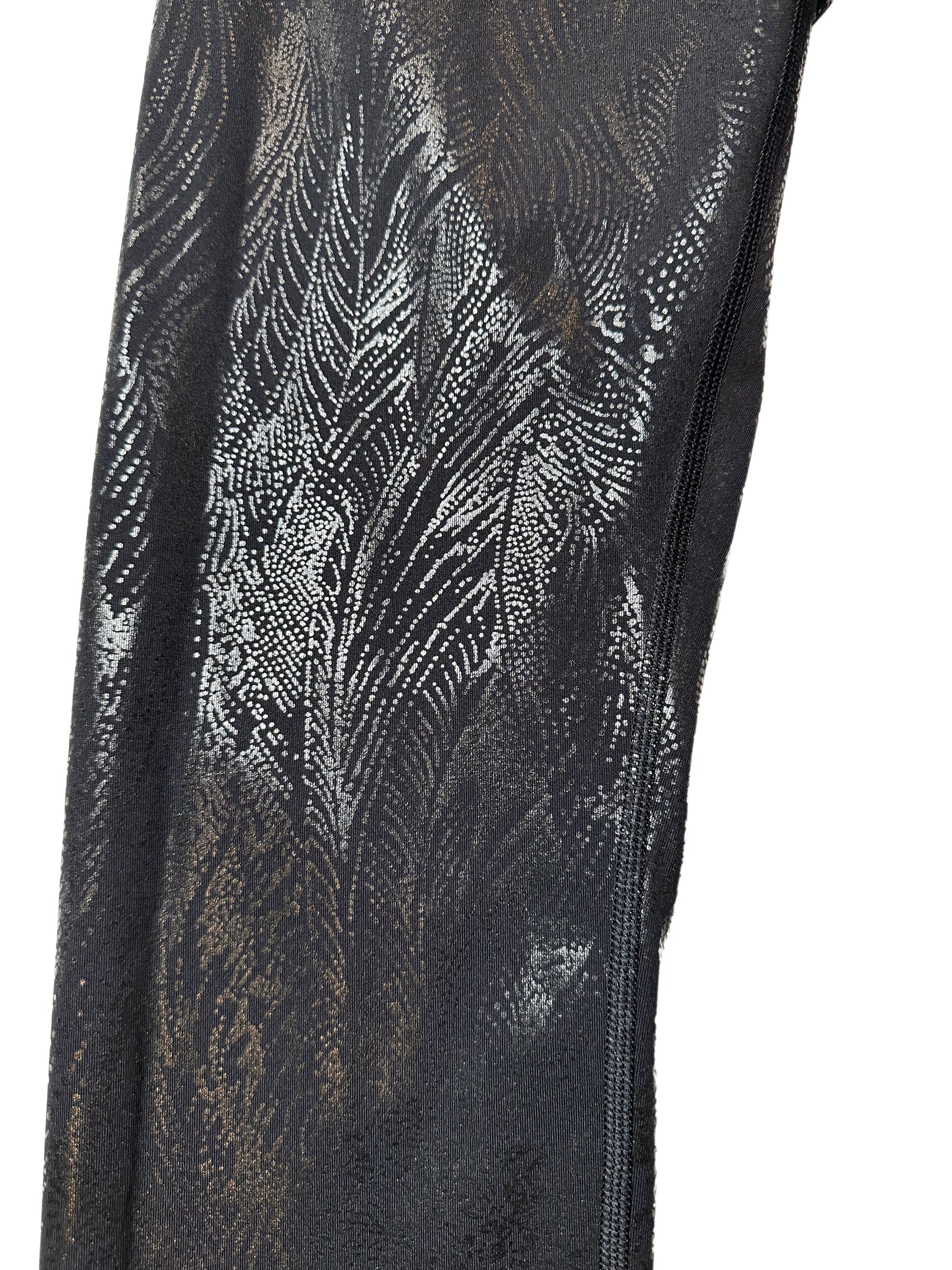 "Get ready to shine in these Lululemon Black Leggings with a unique Metallic Shimmer Print. With a flattering fit and comfortable design, you'll look and feel amazing at the gym or running errands. Stand out from the crowd in style! (Pun intended)."
