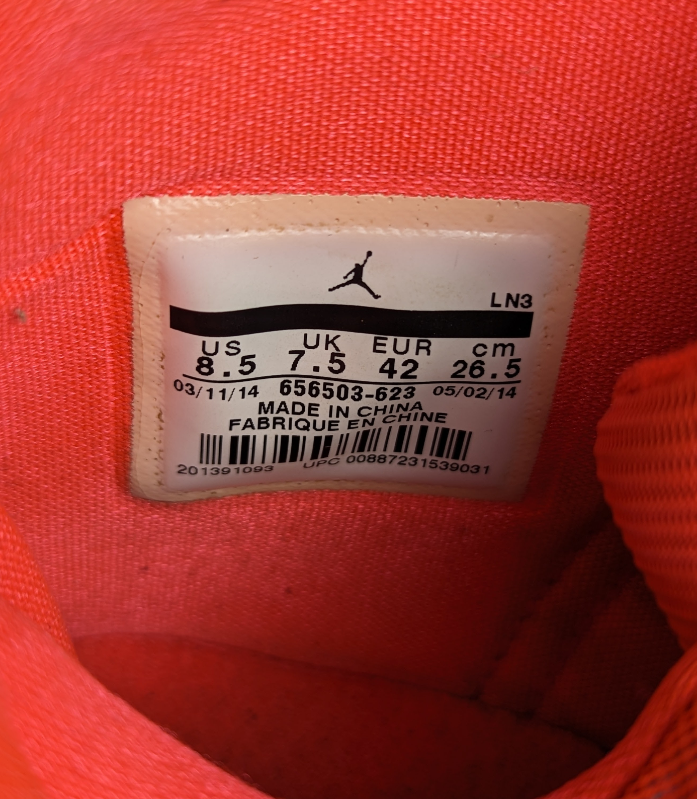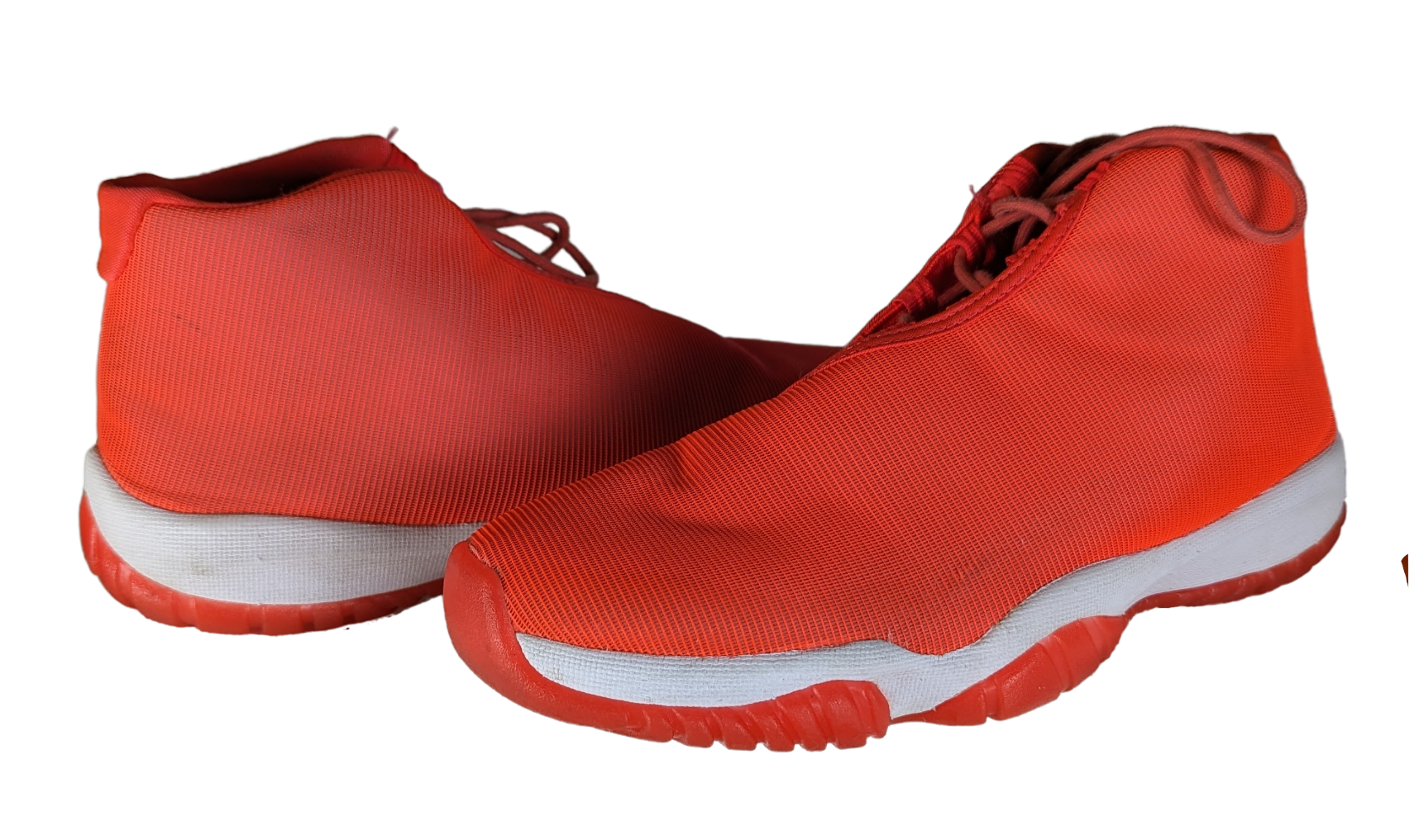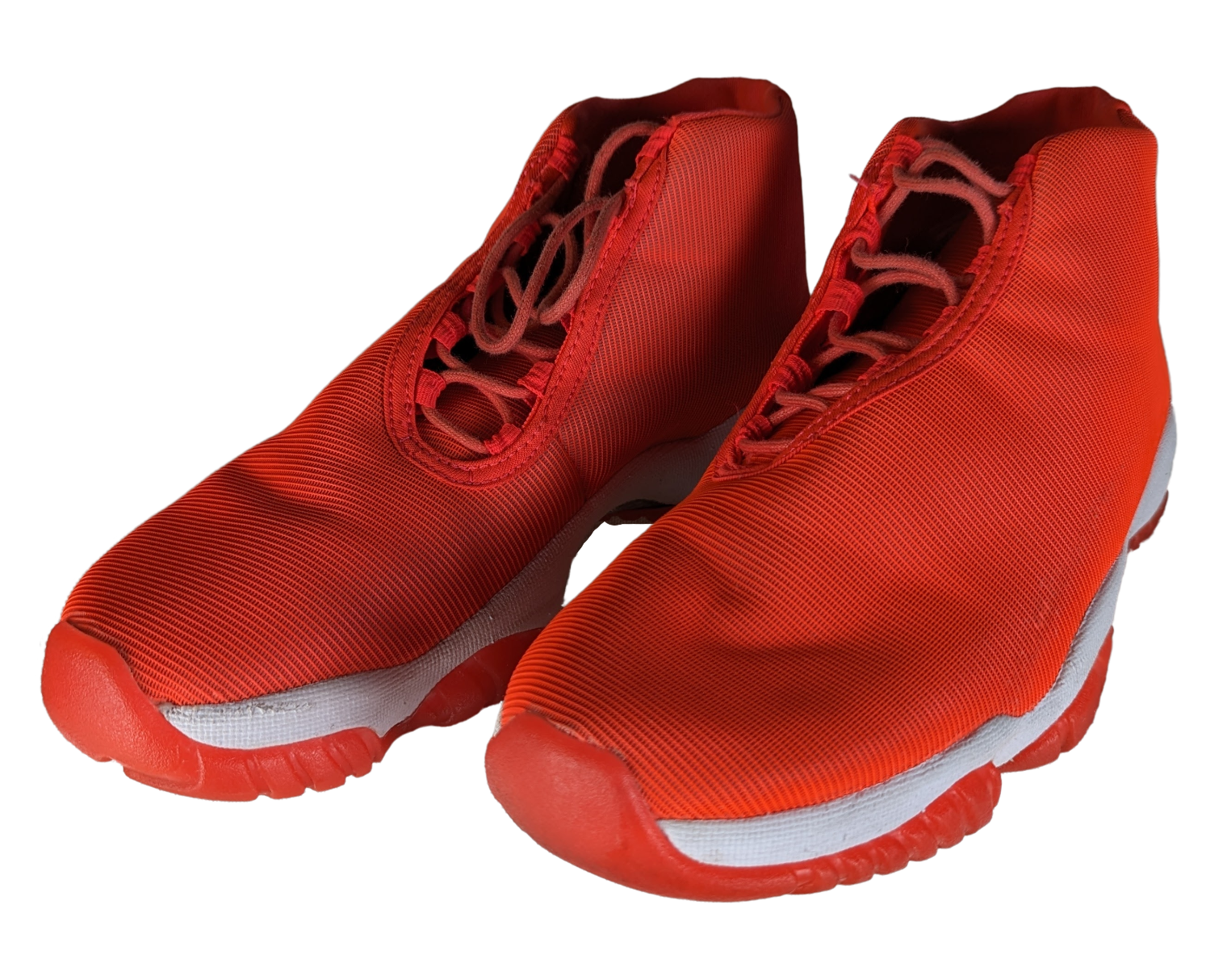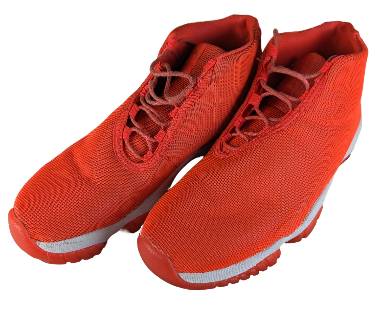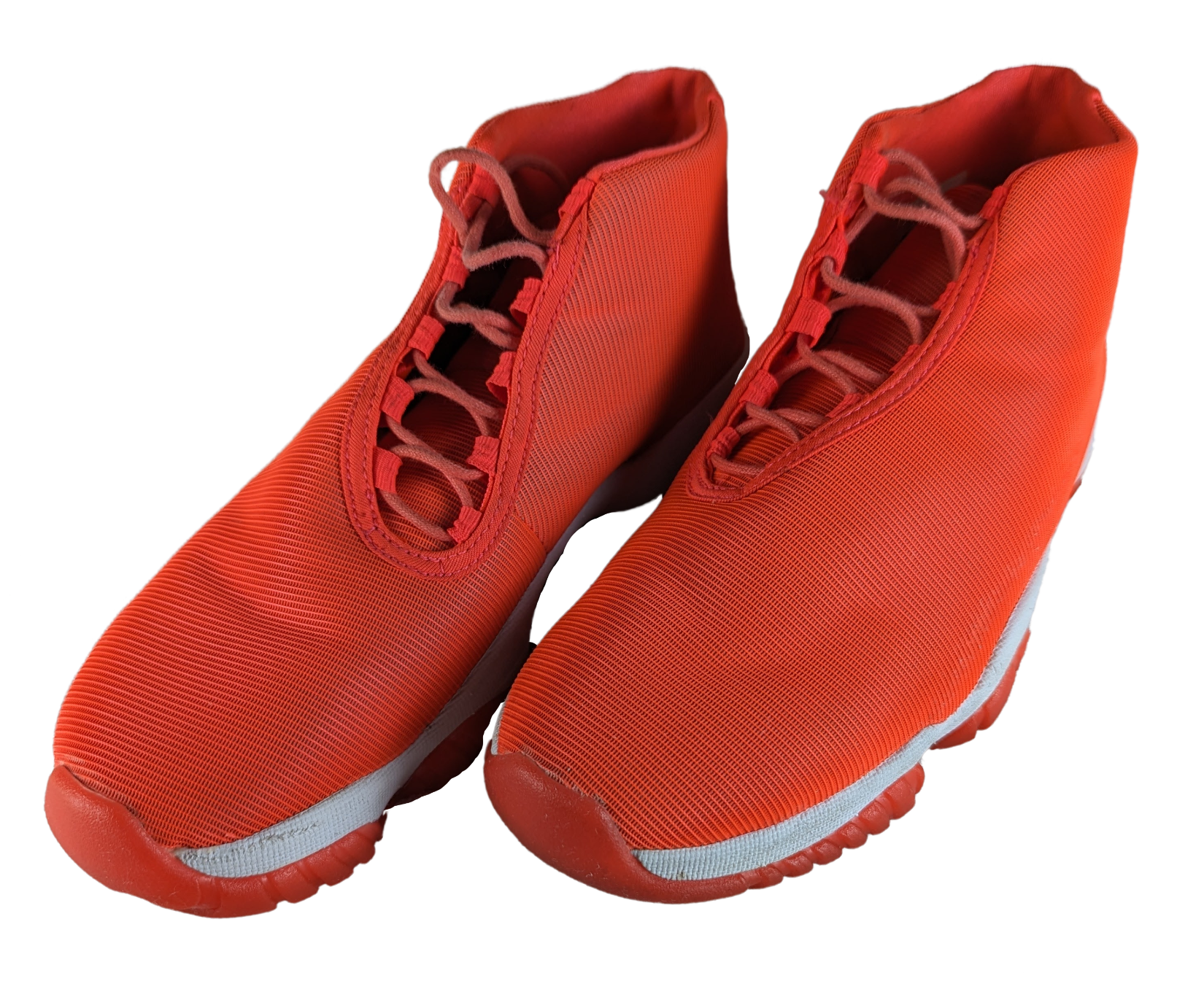 Stay stylish and comfortable with these Nike Jordan's! Featuring a sleek Future Infrared 23 design in white, these shoes are perfect for any casual or athletic occasion. Available in men's size 8.5, these Jordans are a must-have for any sneaker collection. Wear shows inside shoe.