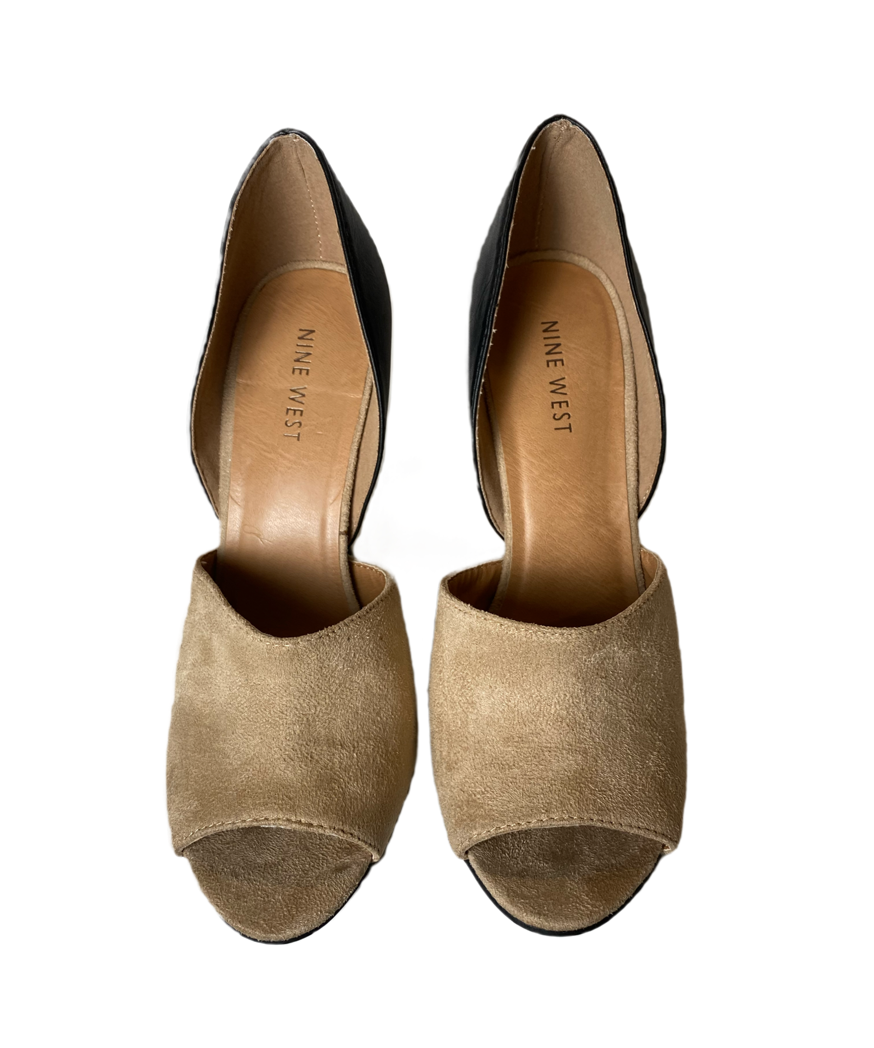 Nine West Tan and Black Peep Toe Pumps - NWB