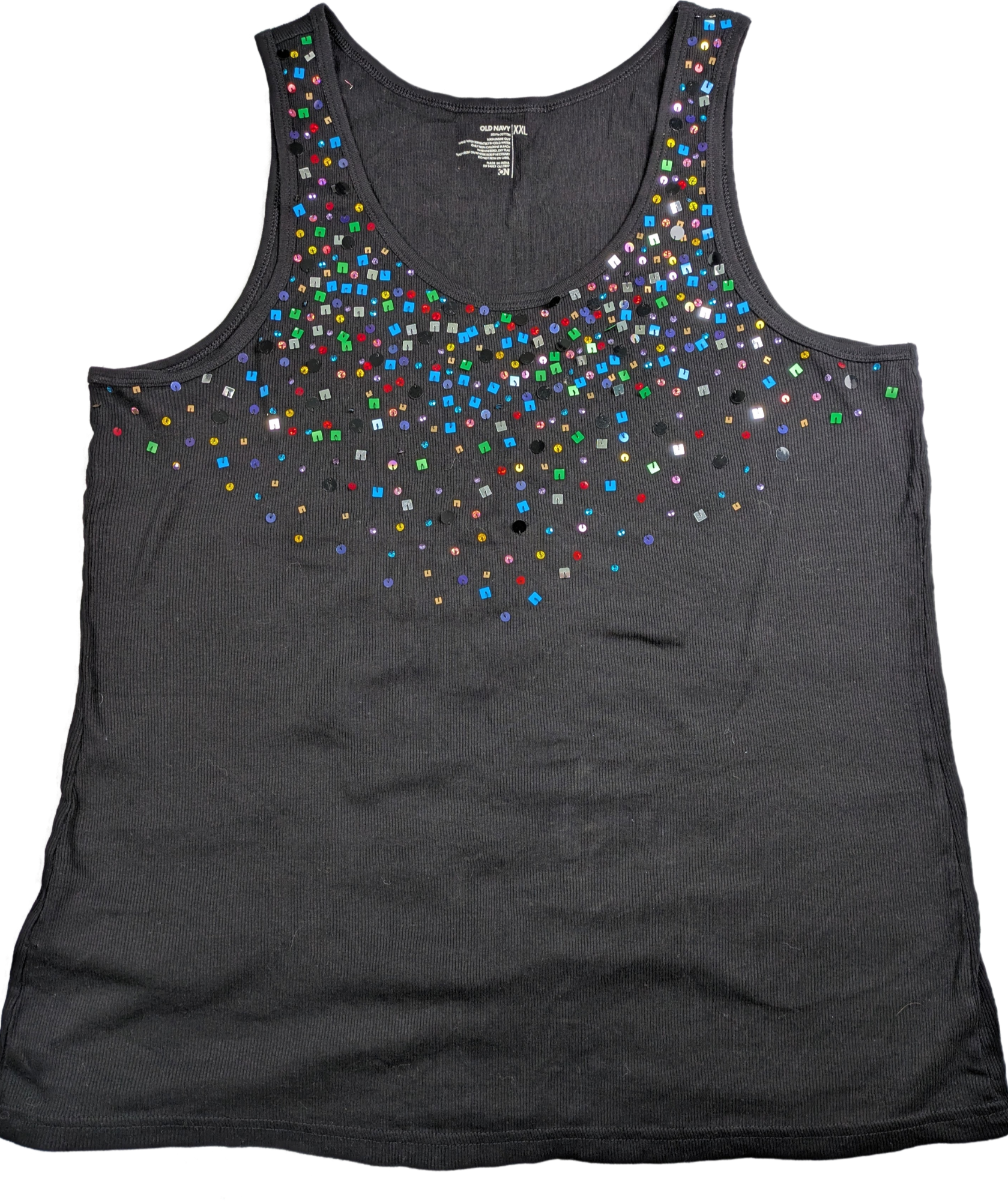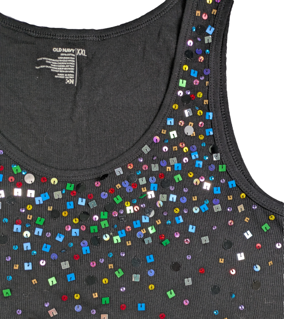 Old Navy Black Tank with Rainbow-colored Embellishments Size XXL