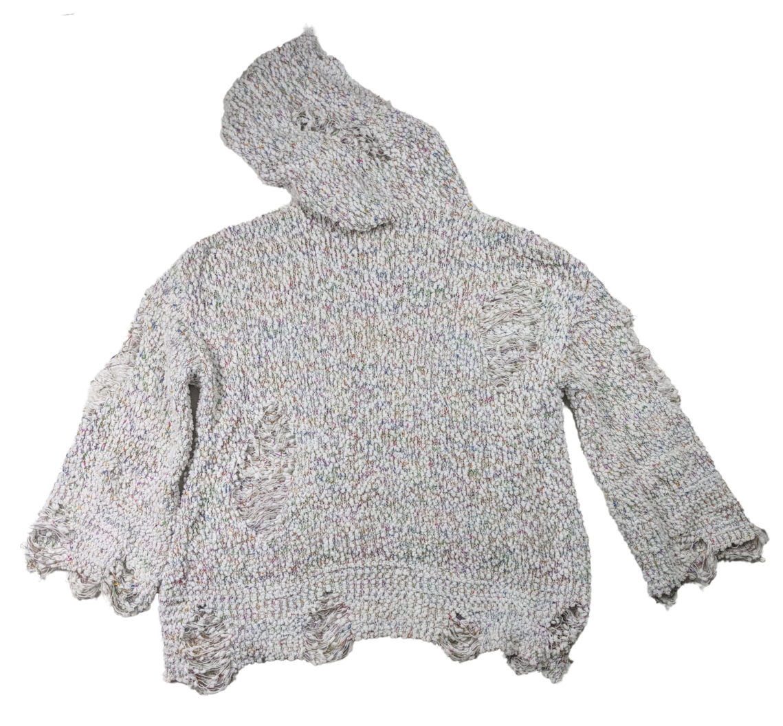 Stay cozy and stylish with the POL Distressed Hoodie Sweater. Made with confetti yarn, this sweater gives a fun and unique look. Featuring a front pocket, it's perfect for keeping your hands warm or storing small essentials. Available in size medium.