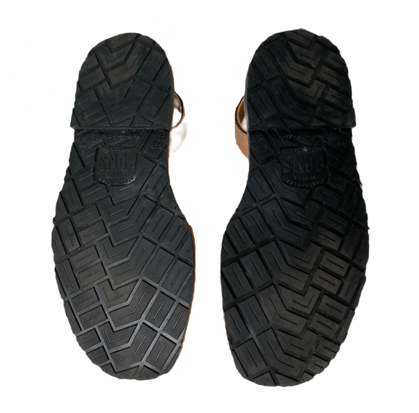 Pons tan leather sandals with tire tread sole. These are new with out the box or tags.