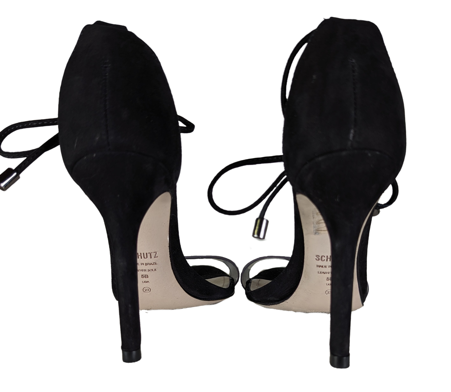 Schutz Black Suede Clear Strap Josseana Sandal Heels Size 5