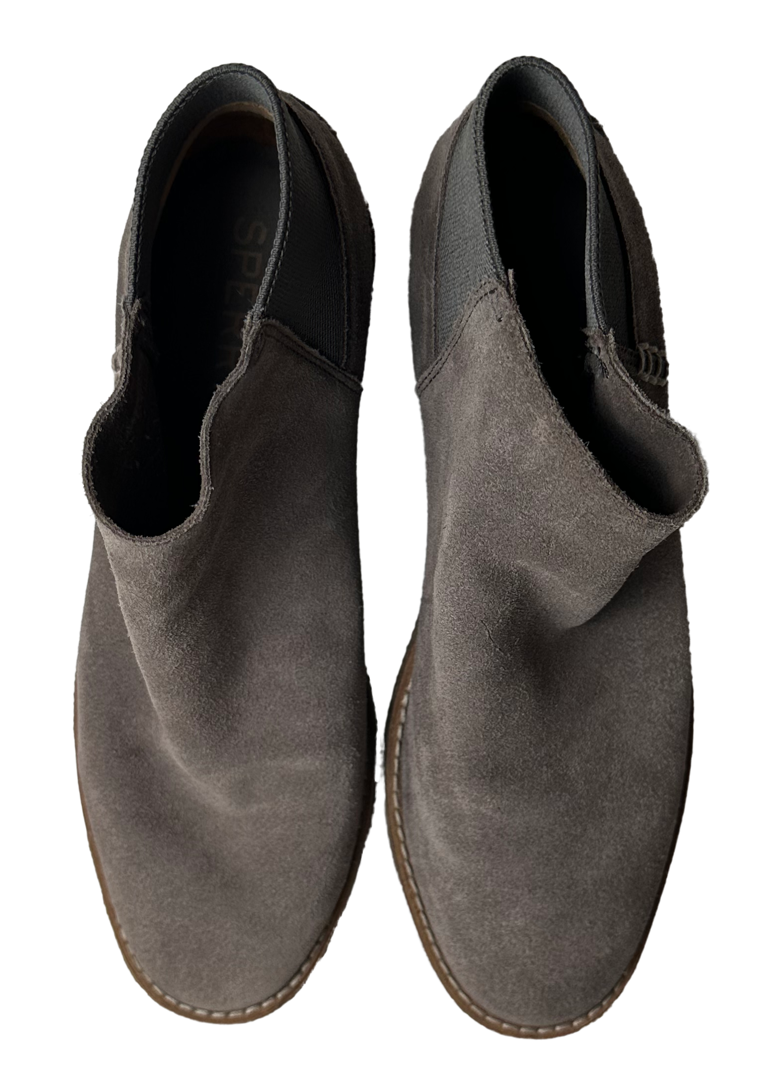 Slip into style with the Sperry Women's Grey Maya Lani Suede Chelsea Ankle Boots. With a low heel for all-day comfort, elastic at back for easy slip on action and beautiful used condition, these size 7.5 boots will be your go-to for effortless fashion. (Boot your boring boots to the curb!)