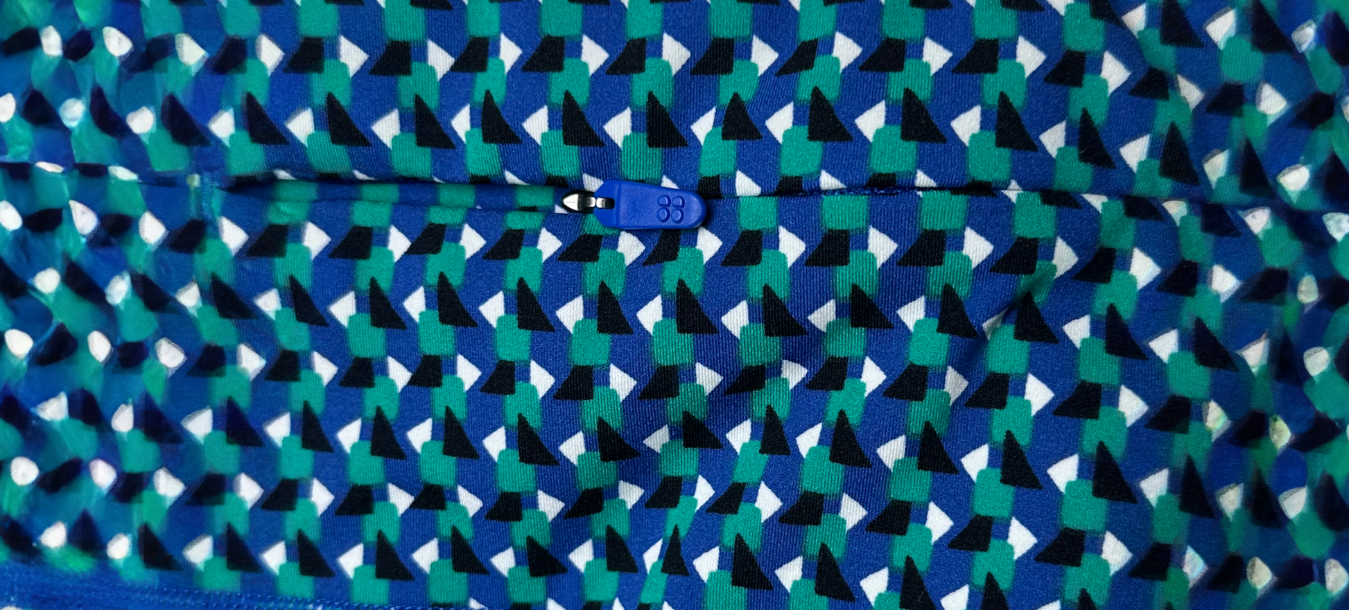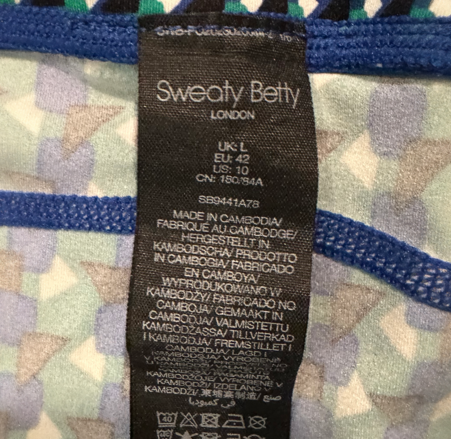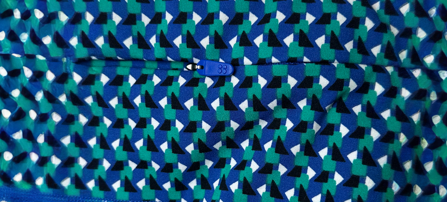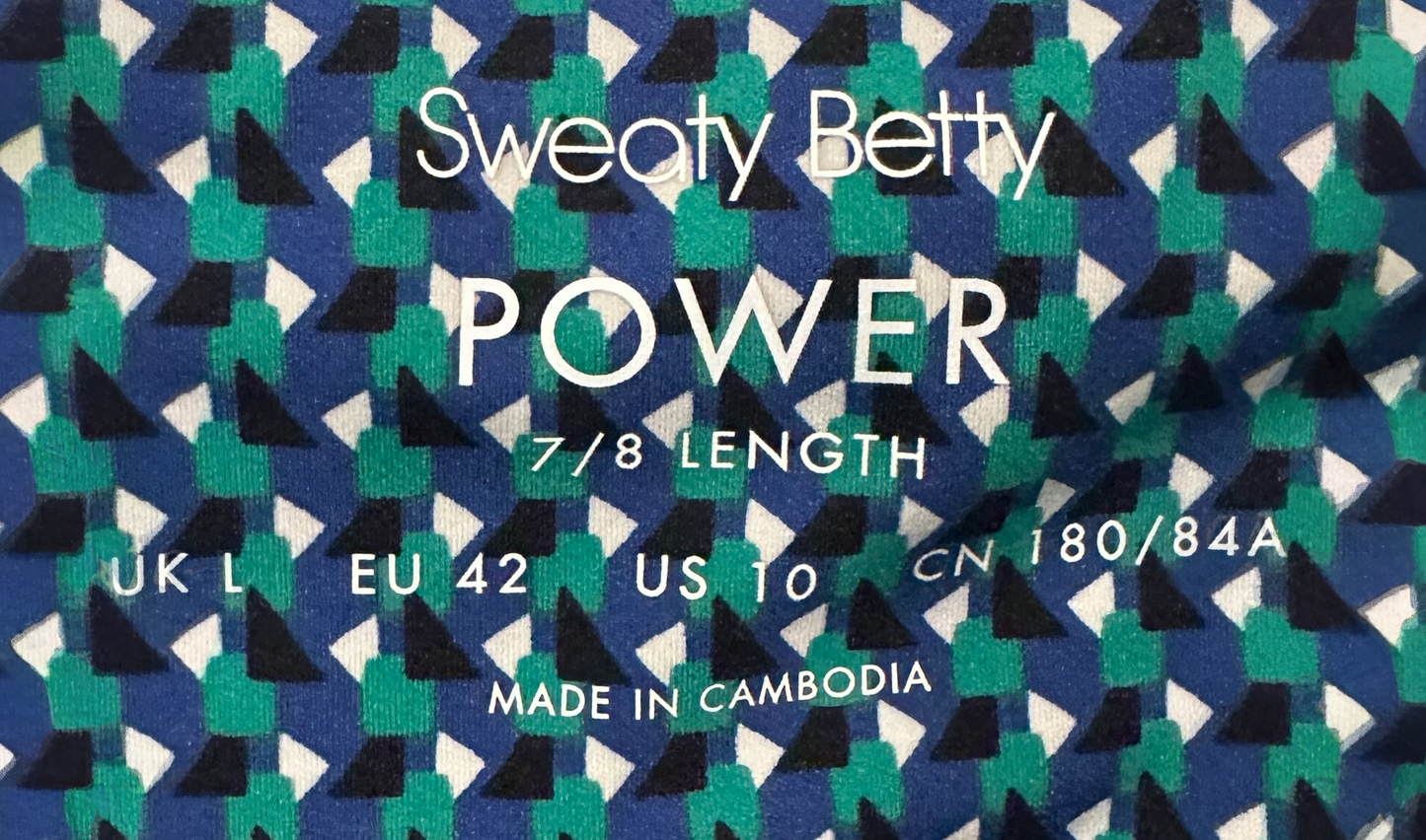 Step up your workout game with these playful "Power" blue and green geometric print leggings from Sweaty Betty. Designed in a comfortable 7/8 length for ease of movement, they feature a handy side pocket for your essentials and a small zip pocket at the back to keep your valuables secure. Perfect for anyone craving style and functionality in size 10!