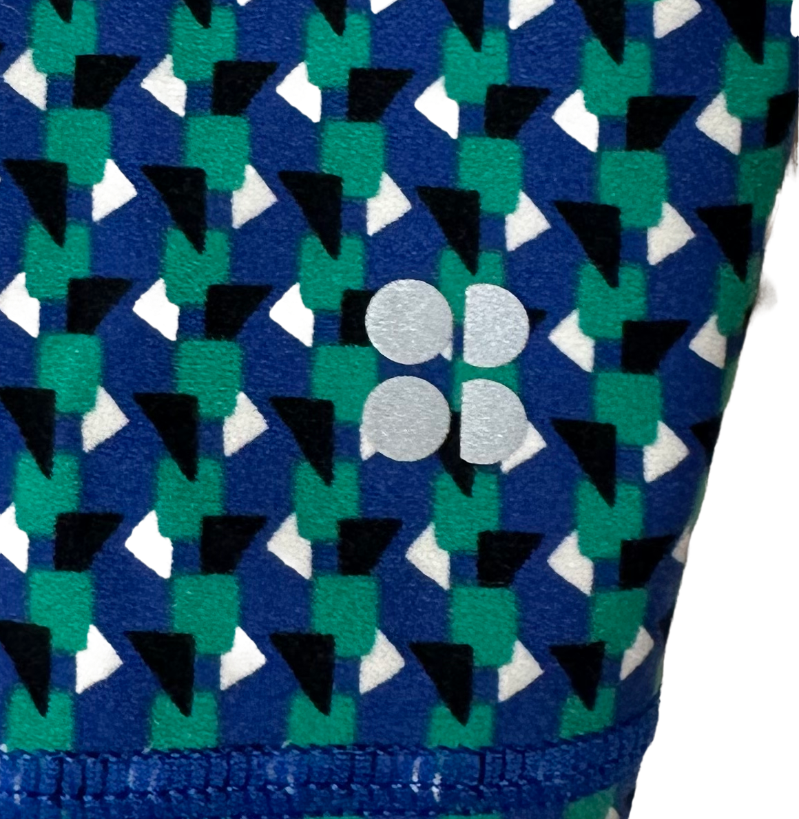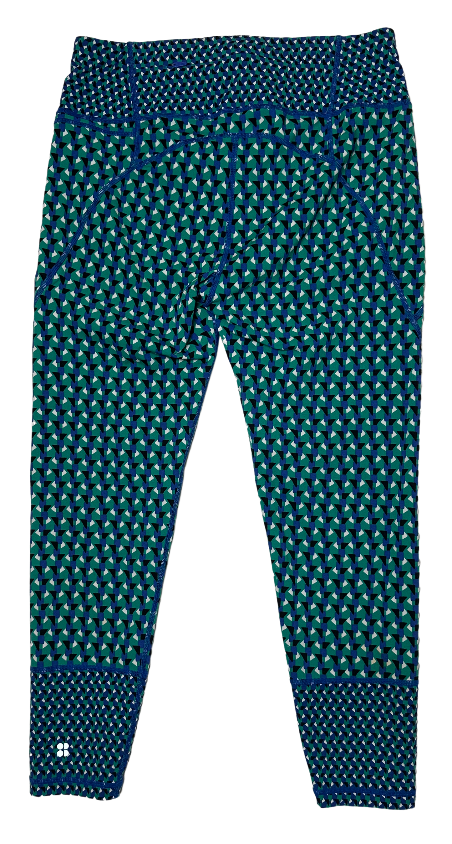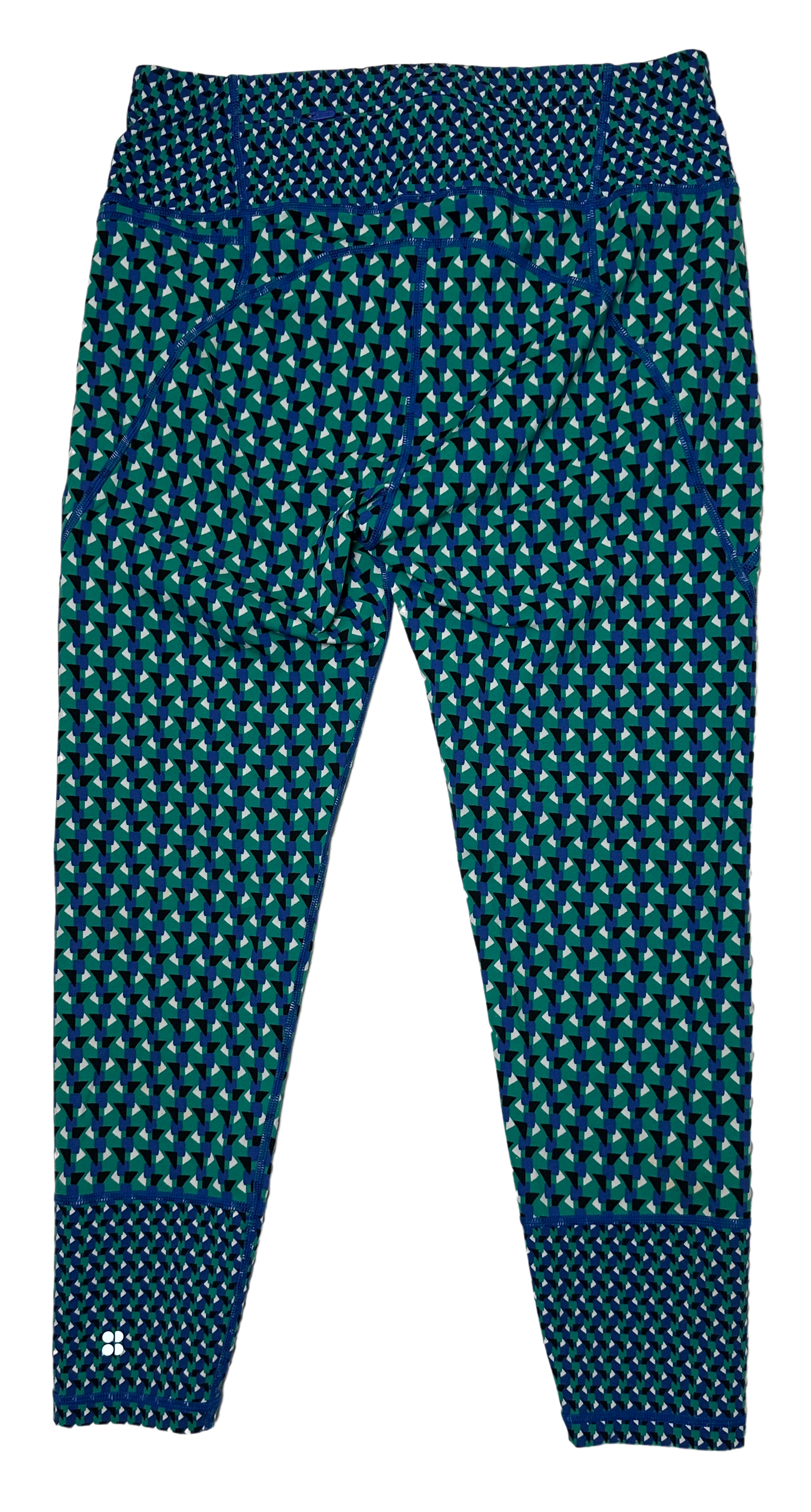 Sweaty Betty 7/8 Length Power Blue & Green Geometric Print Leggings Size 10
