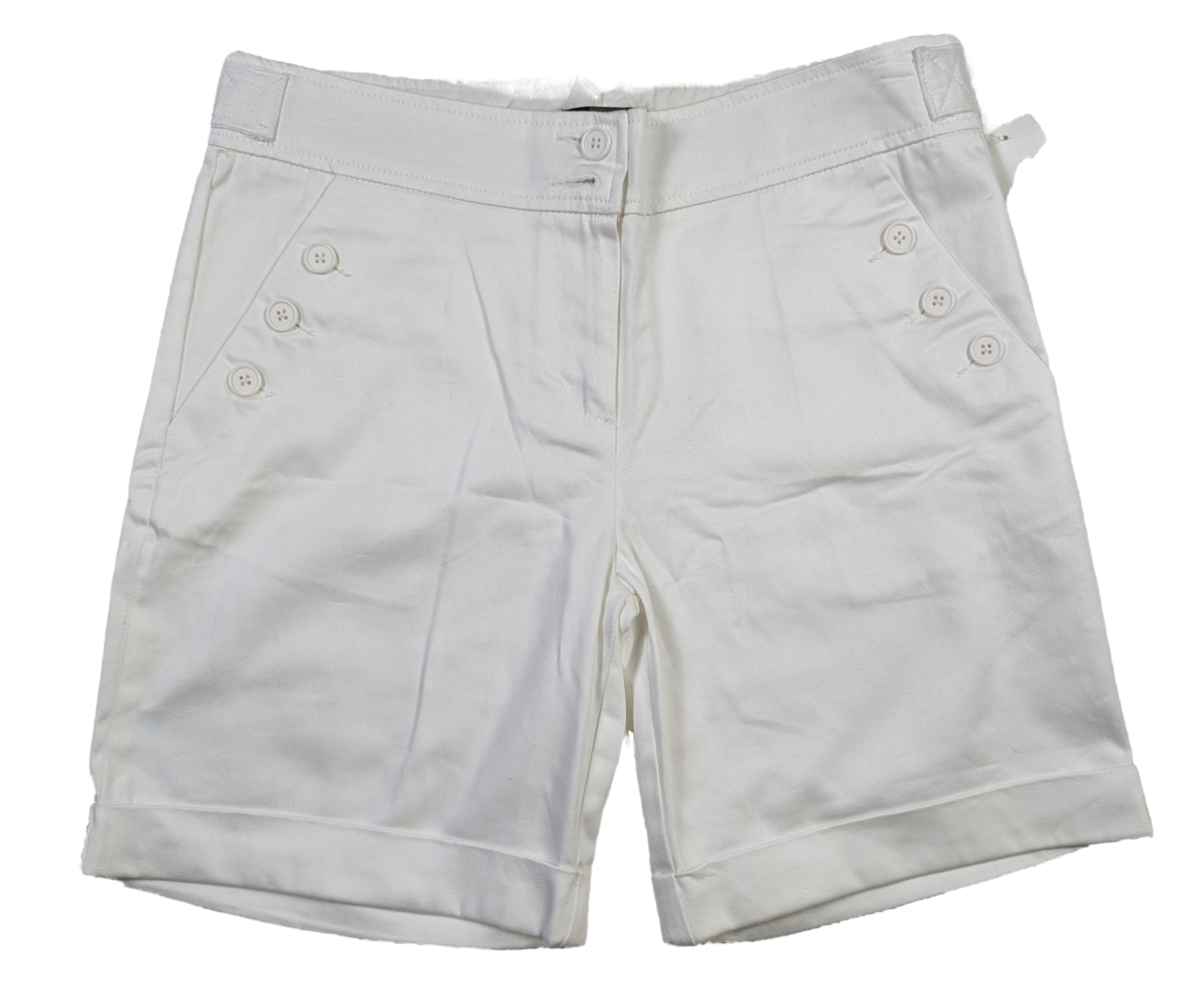 Stay cool and stylish in these Limited White Shorts, featuring front pockets with 3-button closure and back flap pockets for convenience. The button tabs at the waist add a touch of flair, while the stretch fabric ensures a comfortable fit. New with tags, size 4.