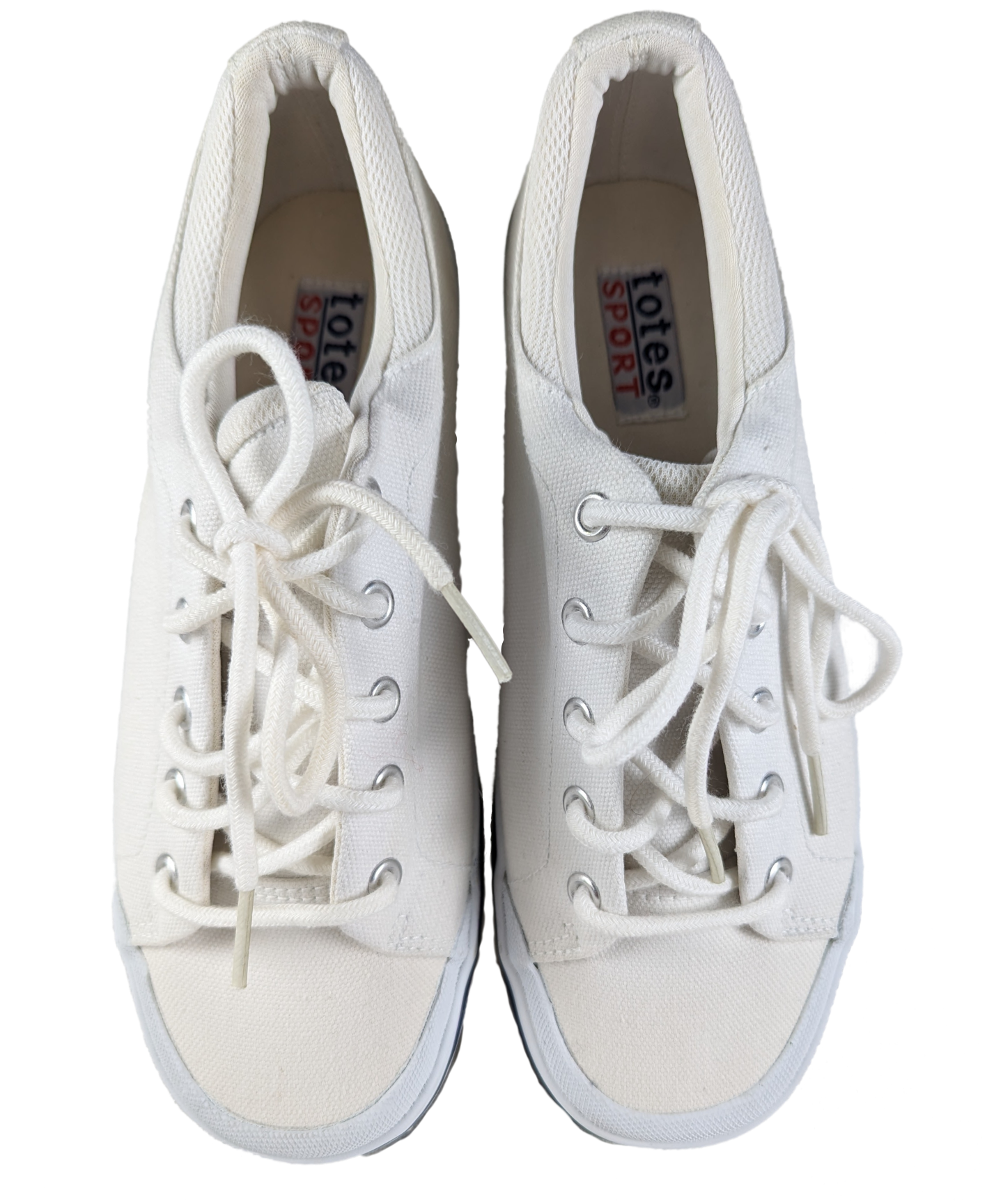 Elevate your style and comfort with Totes Sport White Sneakers. Designed with a canvas upper and rubber sole, these sneakers provide unbeatable durability and support. Experience the perfect fit with size 8W. Upgrade your athletic gear with Totes Sport.