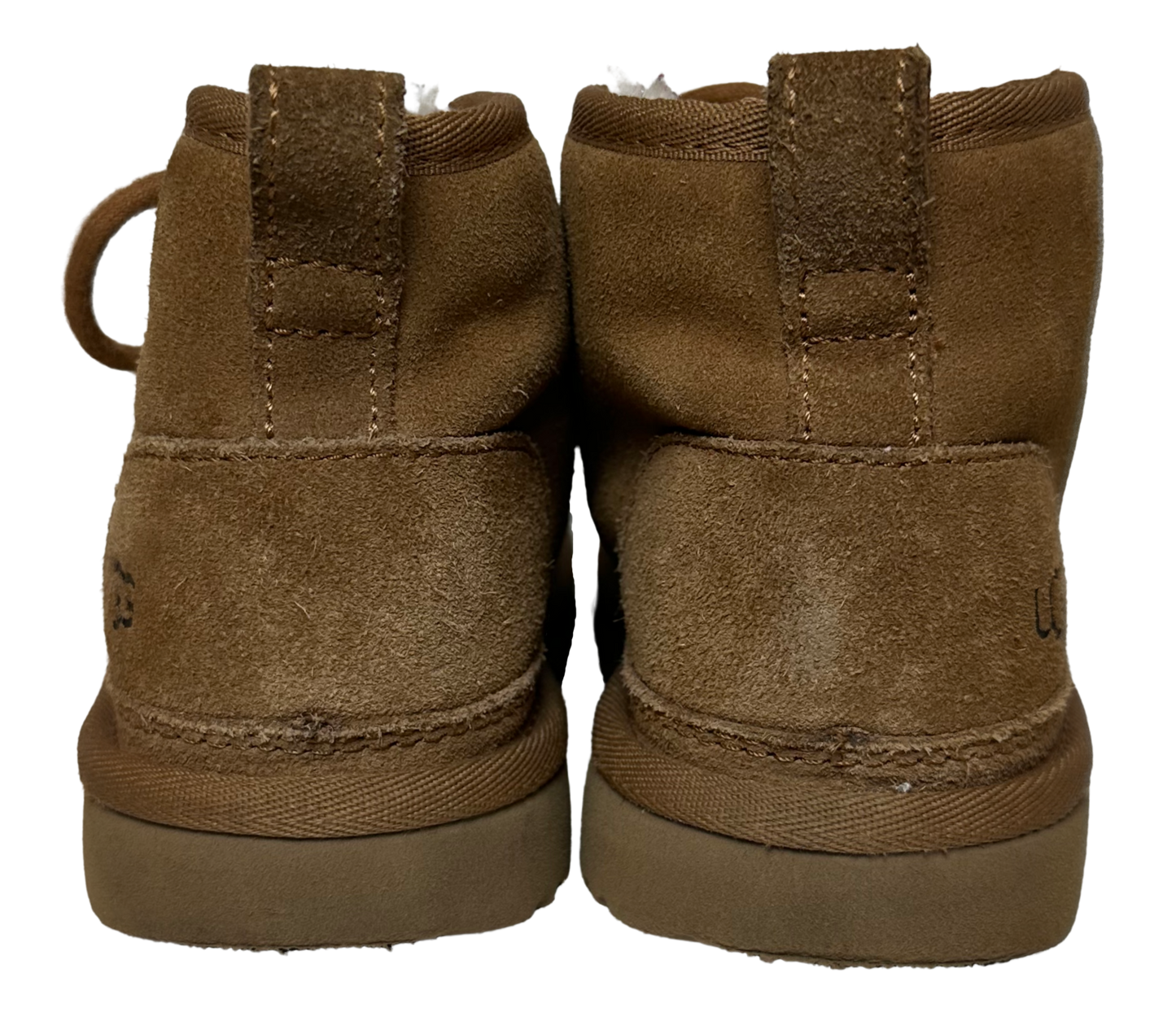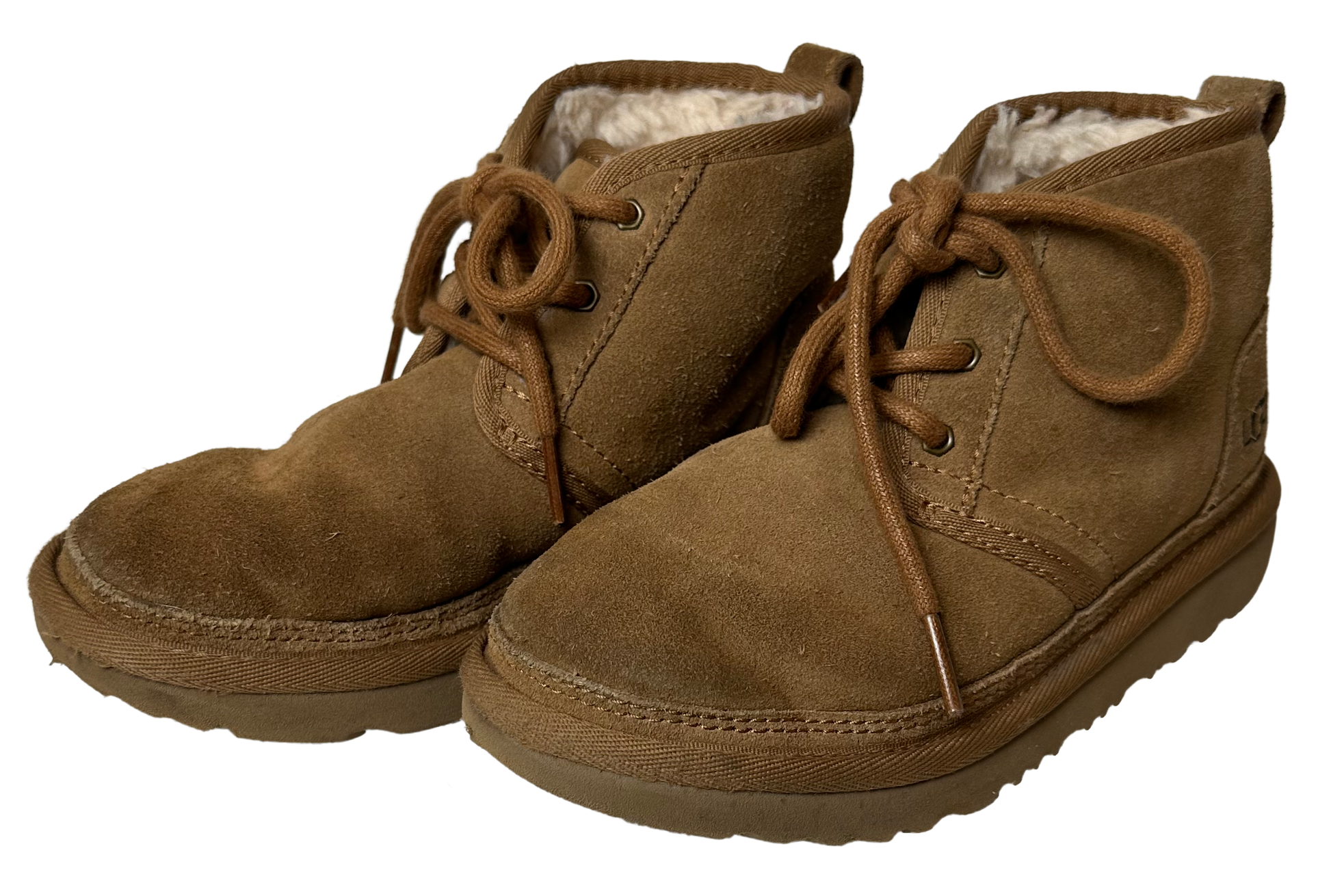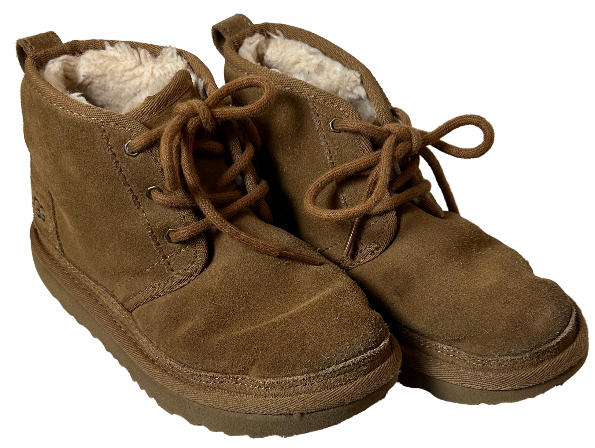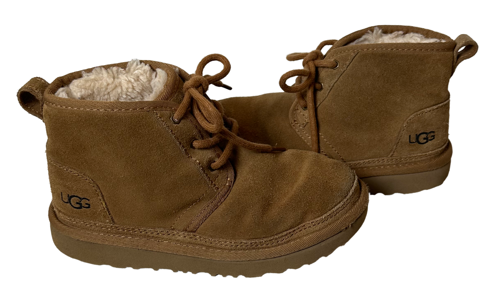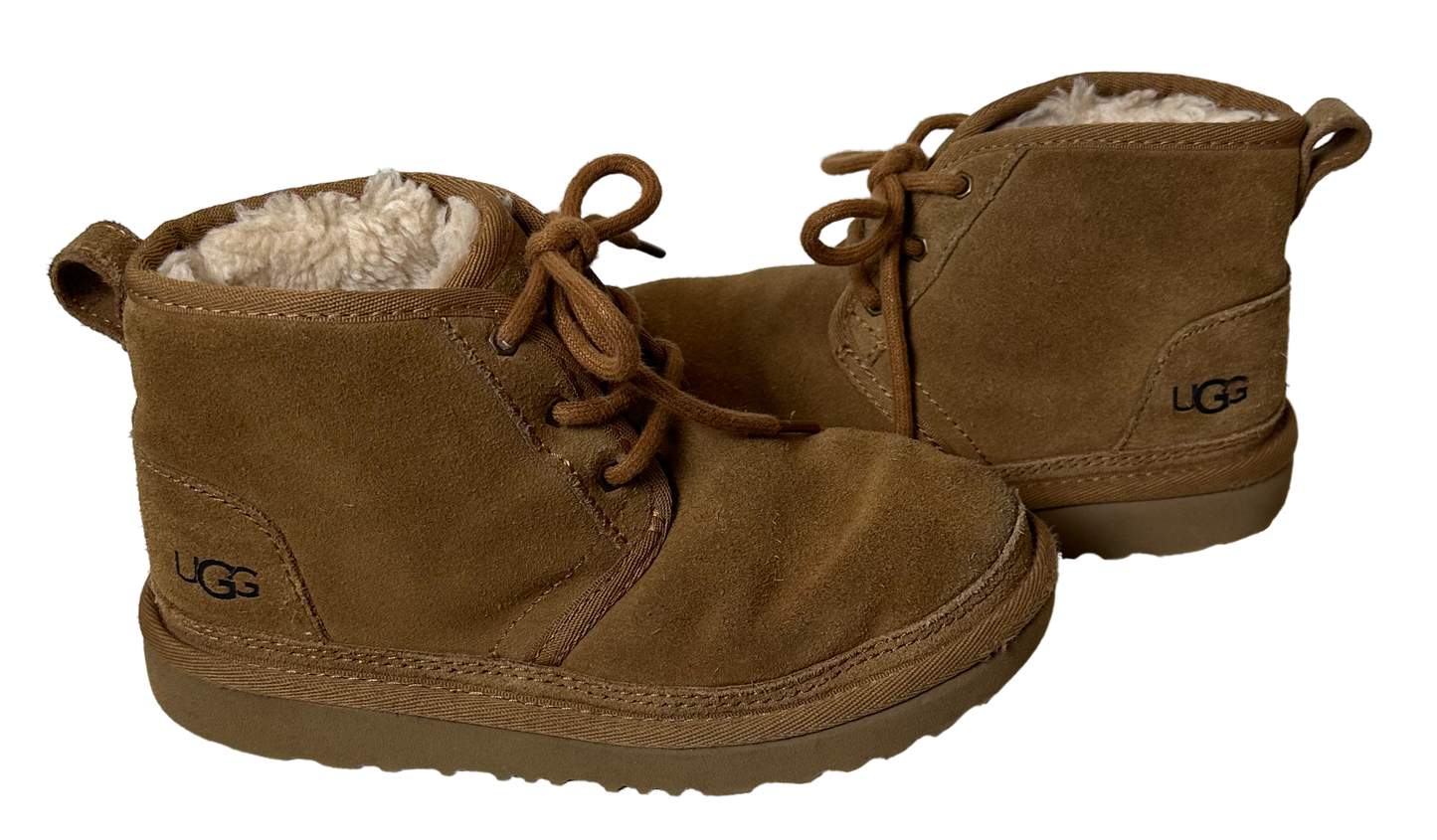 Step up their shoe game with these Ugg Iconic Neumel Kids Tan Lace Up Chukka Boots. Made of suede and sherpa lined for warmth and style. Pre-loved and ready to rock. (Your kids will be the coolest on the playground.)