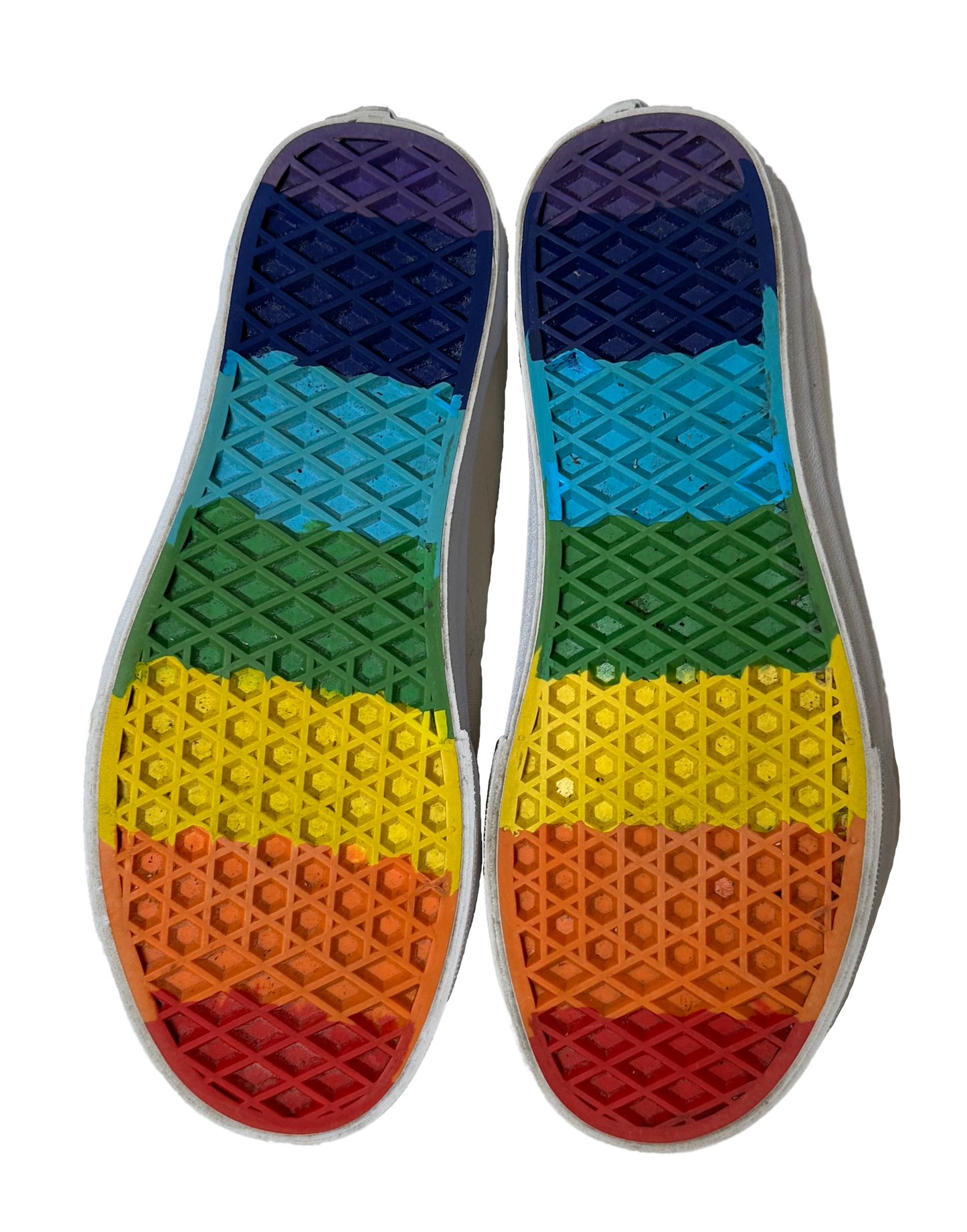 Get ready to skate with the Vans Limited Edition Old Skool Rainbow Skate Sneakers! These kicks feature rainbow tipped laces for a pop of color, a rainbow vans swoosh, a rainbow insole, they even have a rainbow sole for a unique touch. Stand out from the crowd in style with these playful and quirky sneakers.
