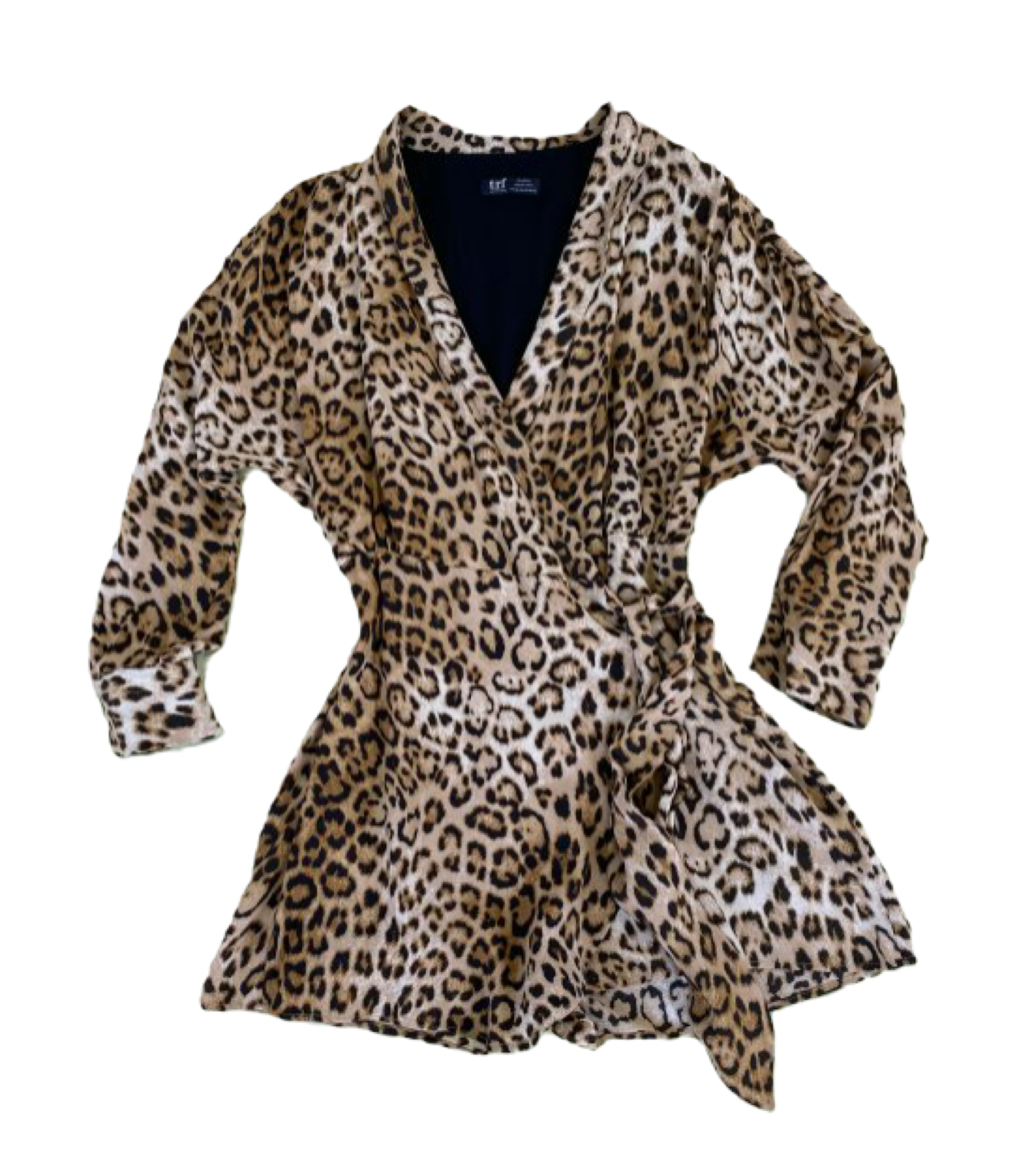 Embrace your wild side in this Zara TRF romper (XS). Its fierce leopard print, plunging neckline and long sleeves make you stand out from the pack. Perfect for a night out or a casual day look. Let your inner fashionista roar! (ROAR!)